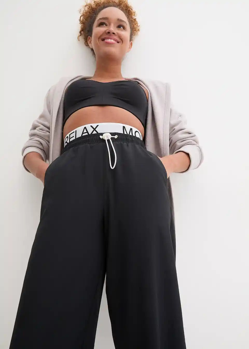 Leichtes, dünnes Material, das gut fällt. Den breiten Bund finde ich ein bisschen zu stramm, eine Größe größer wäre vielleicht besser.
