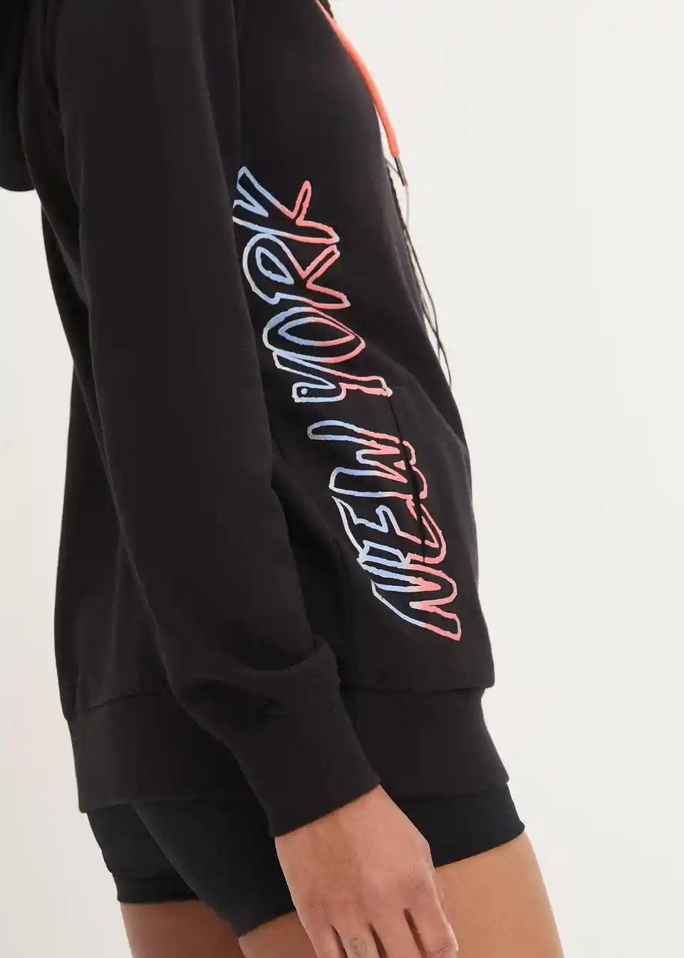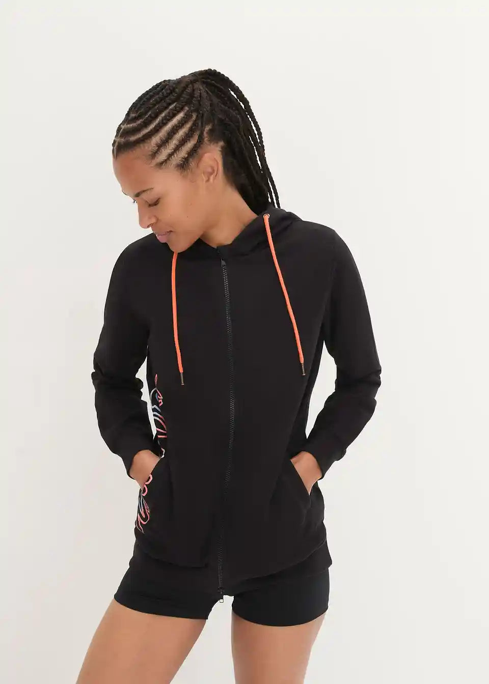 Sweat jakna s kapuljačom, u kombinaciji s odgovarajućim trenirkama može se nositi kao trenirka, džepovi, dvosmjerni patentni zatvarač, u veličini 40/42 cca 70cm duga, može se prati u perilici.