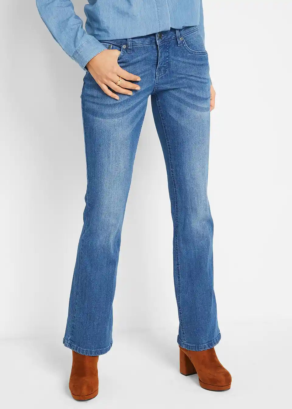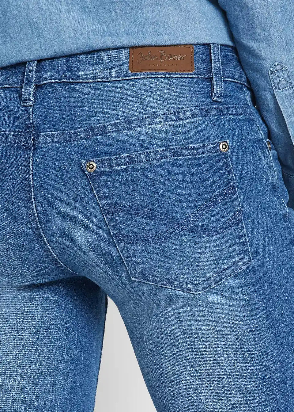 Blago proširena nogavica ovih udobnih stretch traperica oduševljava na tri načina: izgleda moderno, vizualno izdužuje noge i odgovara mnogim tipovima obuće. Model Johna Banera u 5-džepnom dizajnu dodatno se ističe cool pranjem i udobnom visinom struka. Gležnjače i traper košulja daju stretch trapericama s bootcut krojem opušten izgled. Za ženstveni šarm traperice se mogu kombinirati s tunikom uzoraka i salonkama.