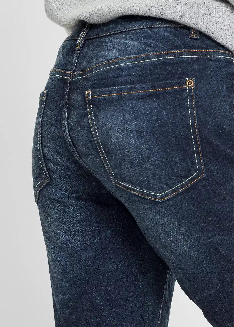 Trendovski izgled pranja i dekorativni ukrasni šavovi – ove Boyfriend-Jeans hlače nude mnogo stilskih detalja. Model izrađen na održiv način, u modernom pranju, širokog je kroja s udobnom visinom struka. Džepovi, omče za remen i zatvarač sprijeda, kao i cool jaram traperica, upečatljivo su prošiveni kontrastnim šavovima. Rubovi stražnjih džepova imaju male metalne zakovice.