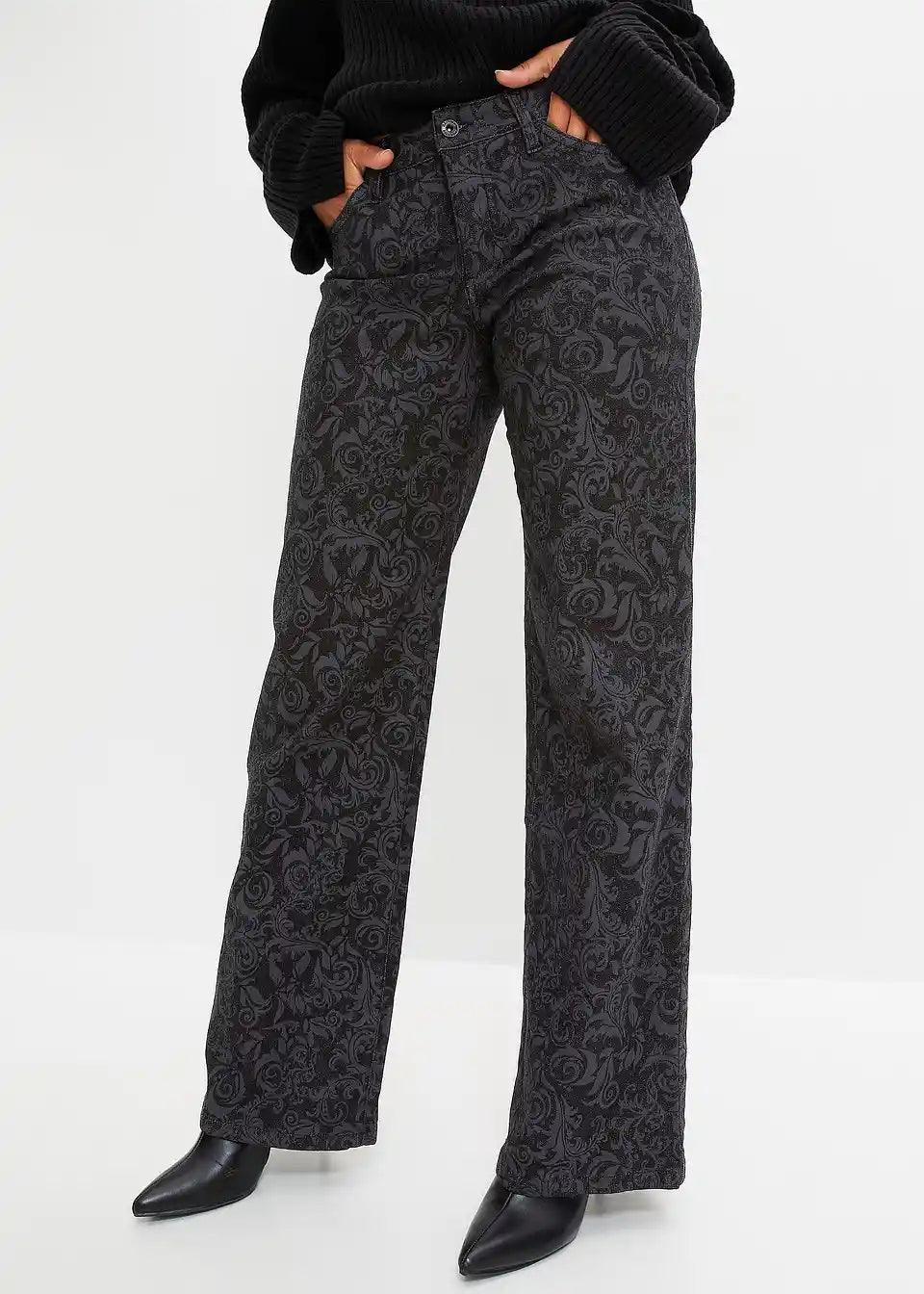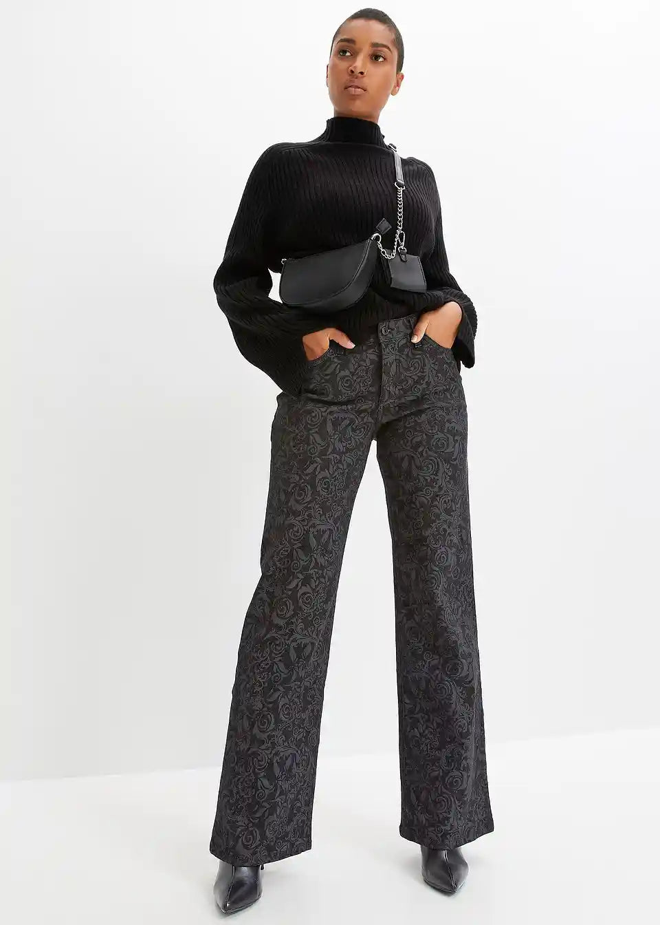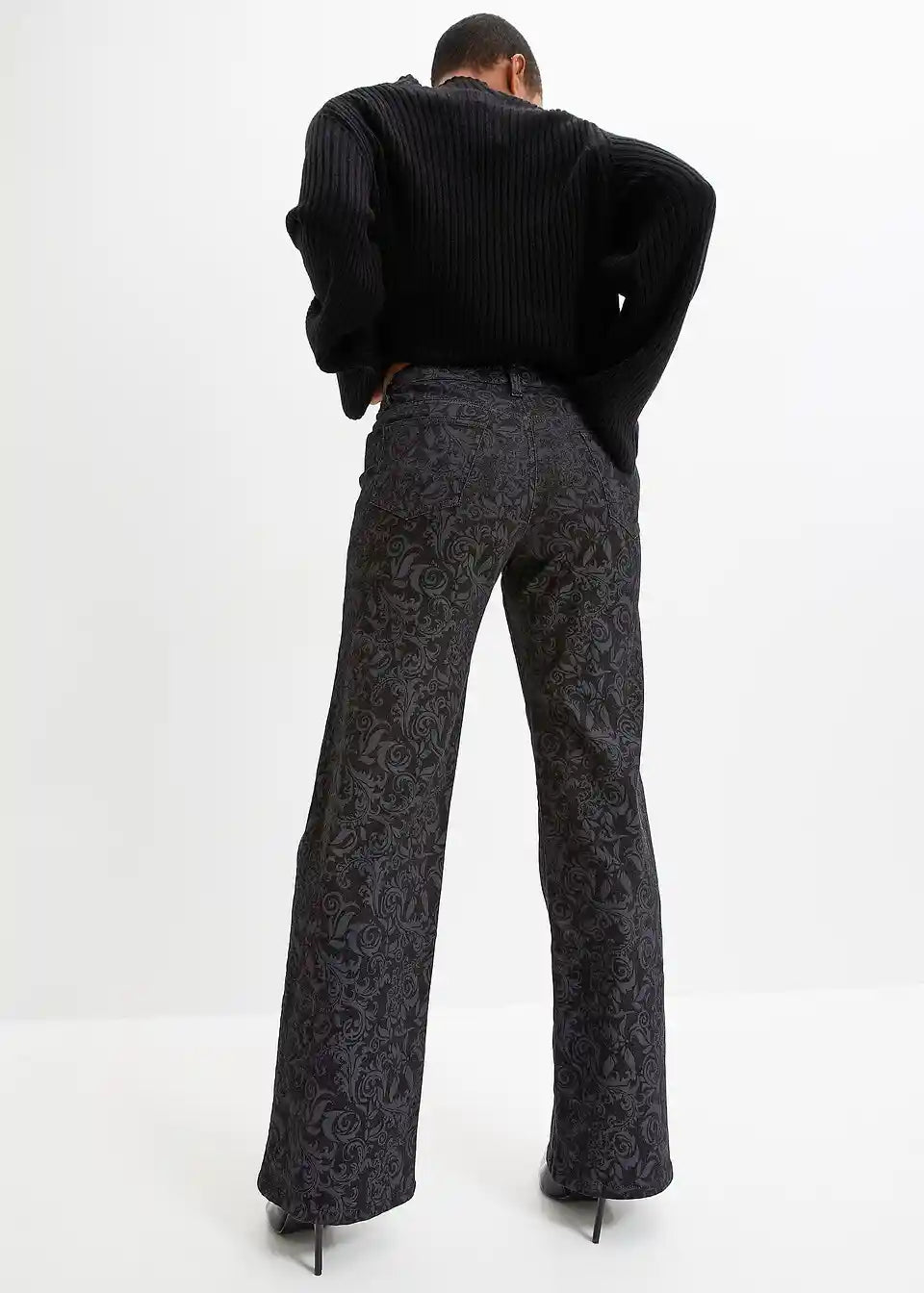 Traperice sa širokim nogavicama, srednje visokim strukom i sjajnim uzorkom