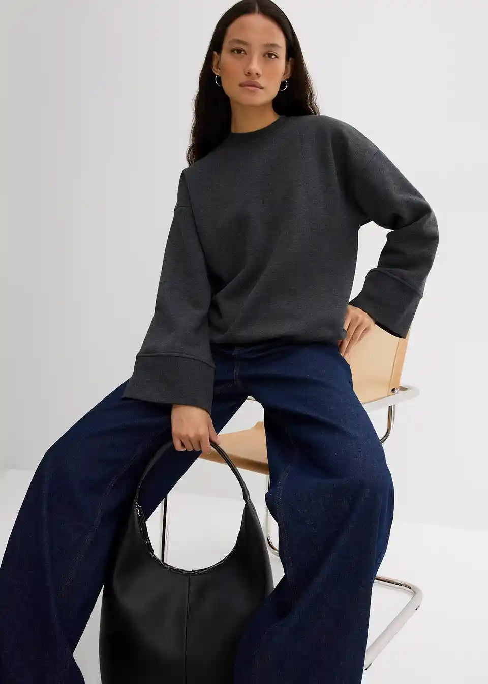 Sweatshirt s okruglim izrezom, spuštenih ramena te širokih dugih rukava