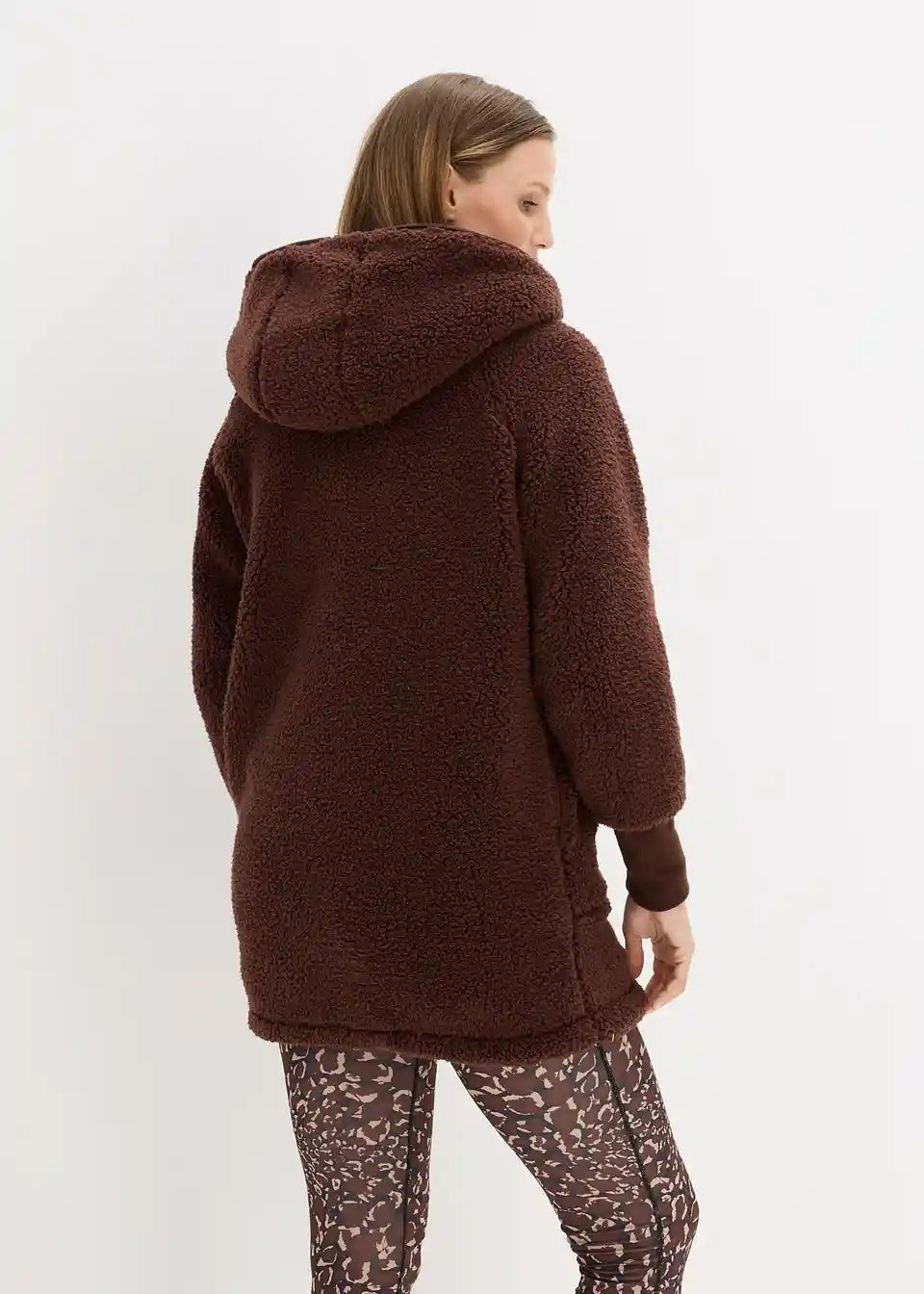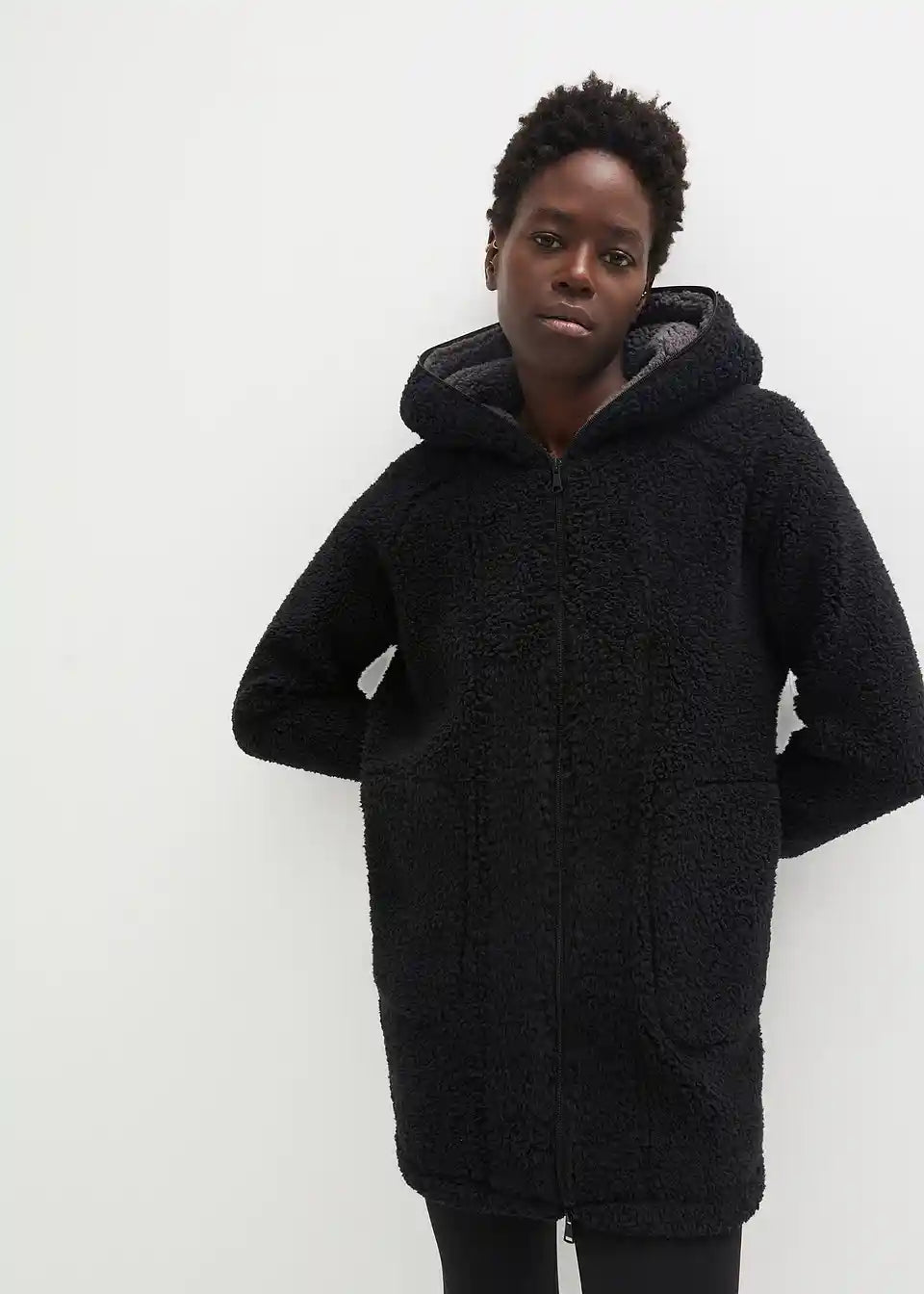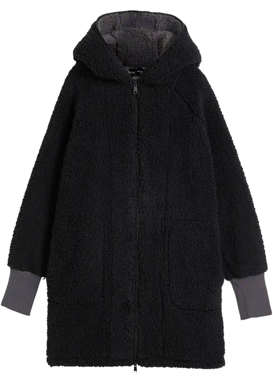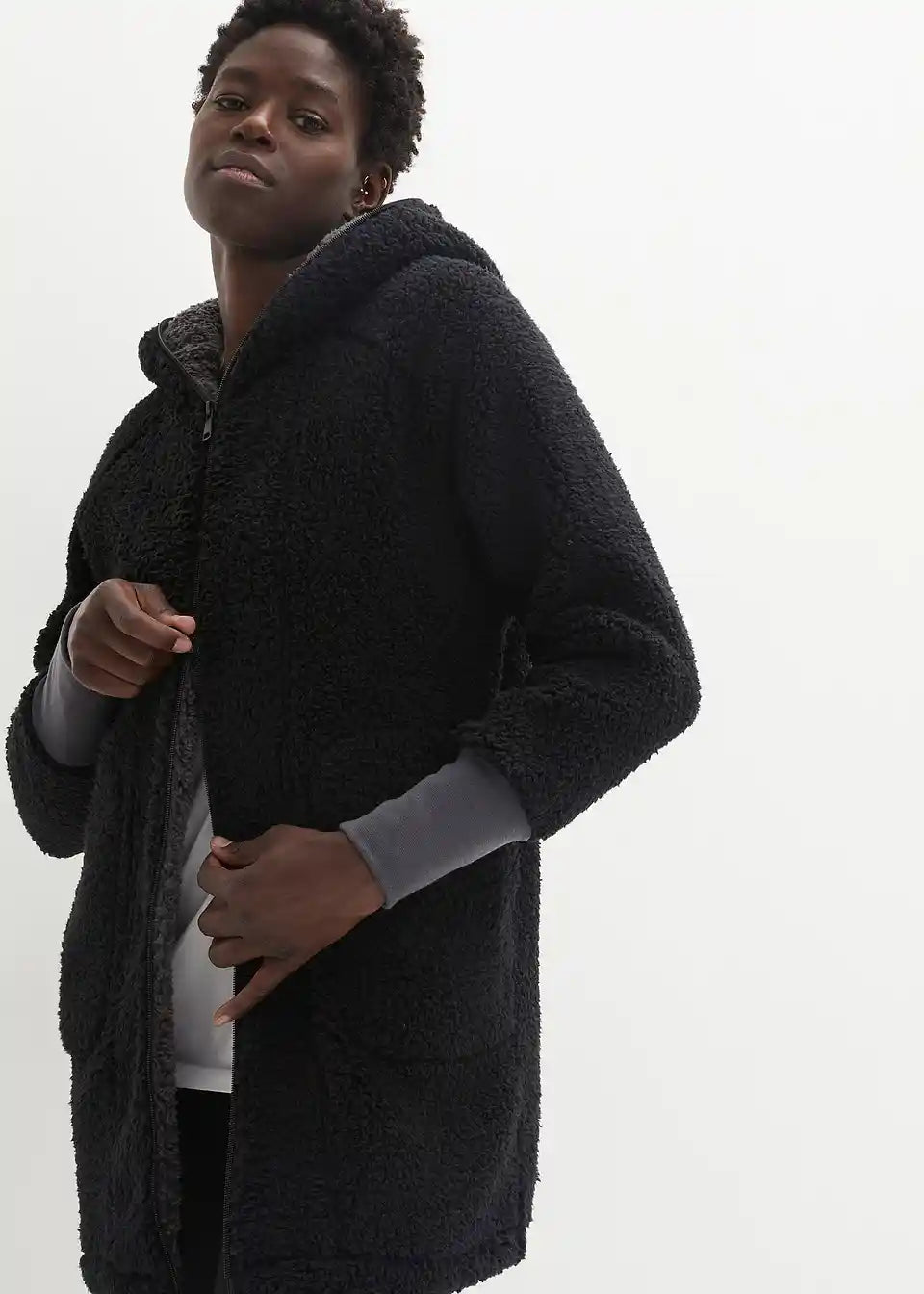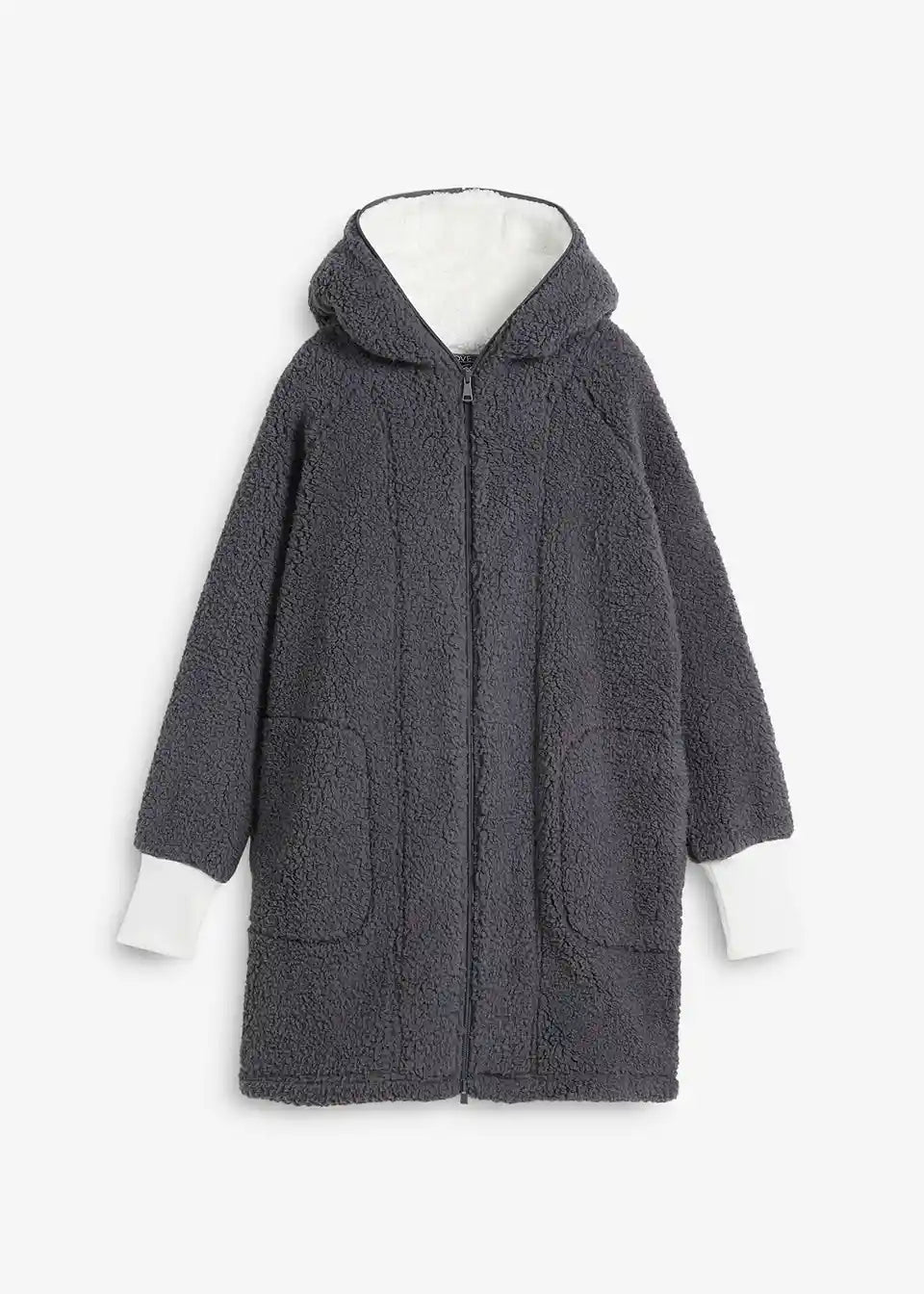 Oversized teddy-fleece kaput s džepovima i dvosmjernim patentnim zatvaračem koji se može zatvoriti uključujući kapuljaču