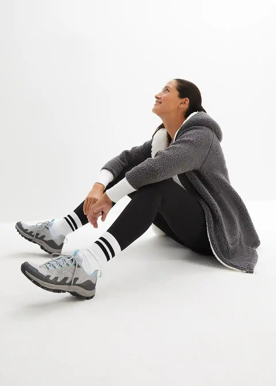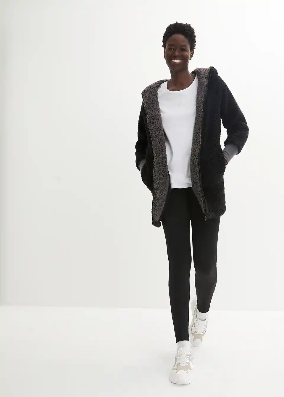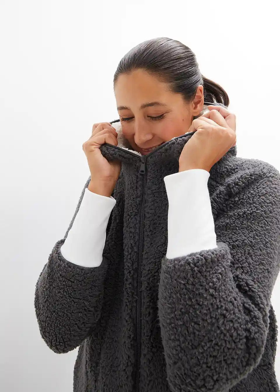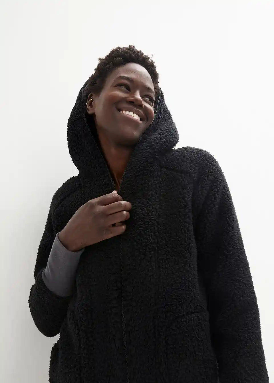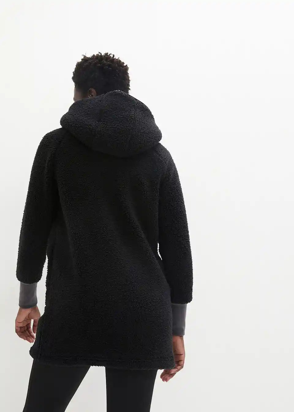 Oversized teddy-fleece kaput s džepovima i dvosmjernim patentnim zatvaračem koji se može zatvoriti uključujući kapuljaču