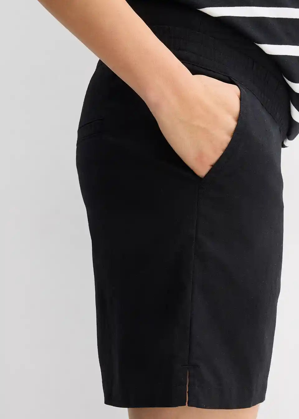 Bermude za trudnice s trakom za trbuh koji se može preklopiti od lana i pamuka