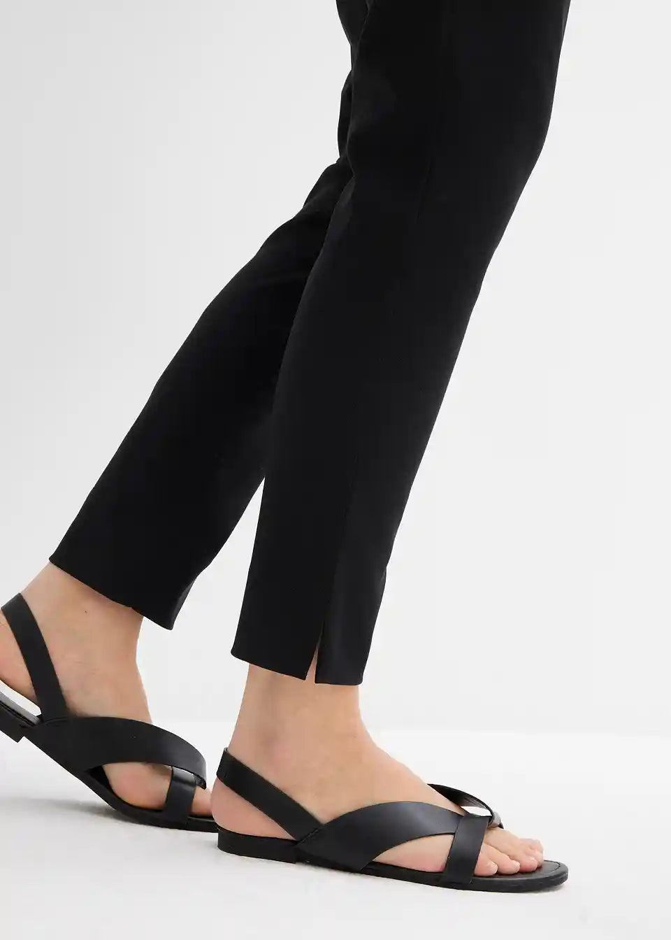 Ove svilenkasto sjajne hlače impresioniraju svojim elegantnim dizajnom i visokim stupnjem udobnosti. Prednji dio sadrži skrivene gumice koje omogućuju individualno prilagođavanje širine trbuha, dok elastična traka straga osigurava dodatnu udobnost. Kosi bočni džepovi i diskretni paspulirani džepovi straga dodaju sofisticirani izgled, dok mali prorezi na rubu nogavica zaokružuju dizajn na stilski način. Mekana jersey traka osigurava savršeno pristajanje na trbuhu i harmonično upotpunjuje cjelokupni izgled.