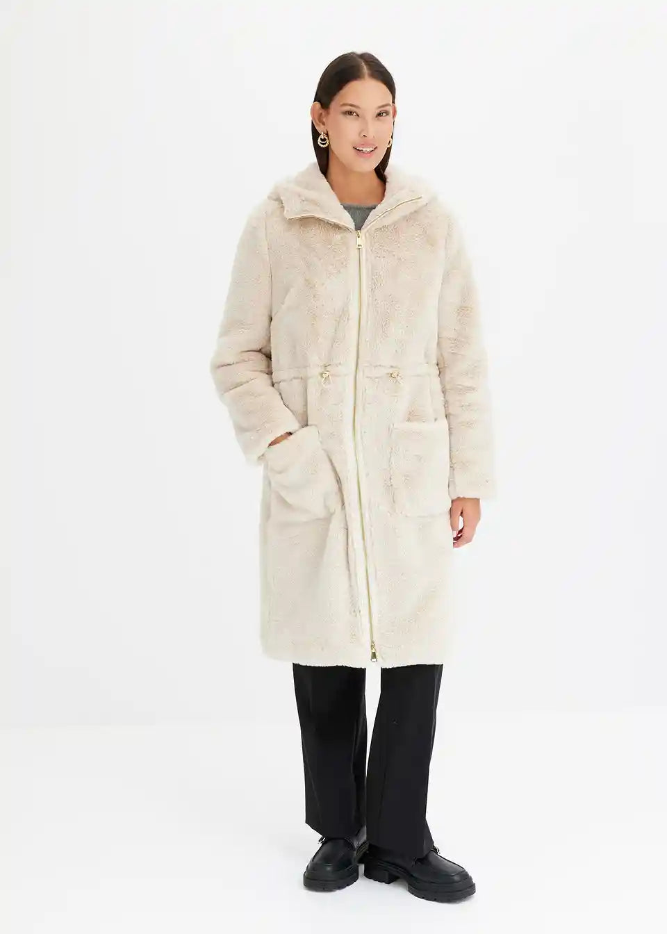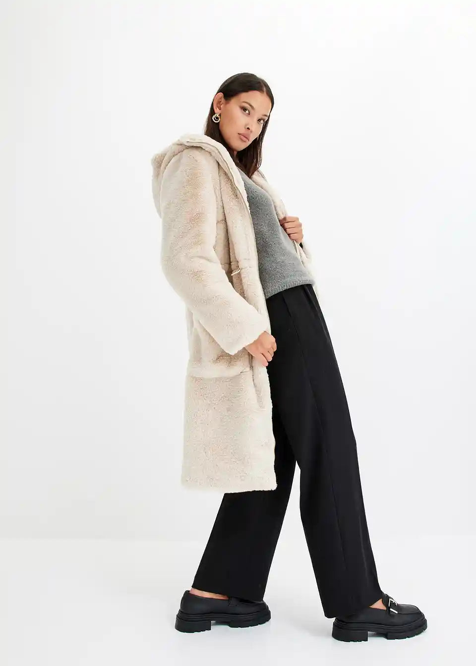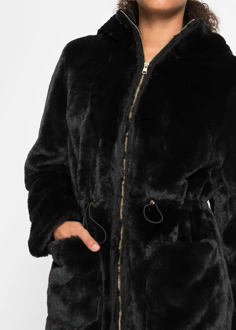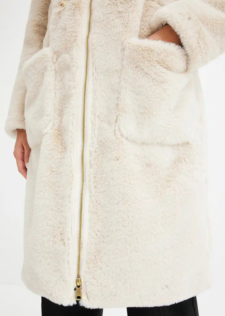 Udoban zimski kaput od tkanine nalik plišu s velikim džepovima i kapuljačom