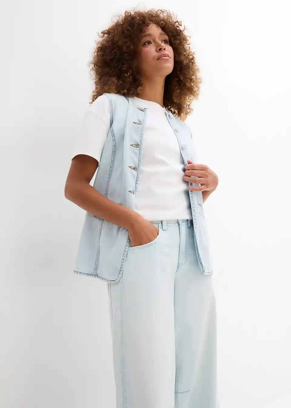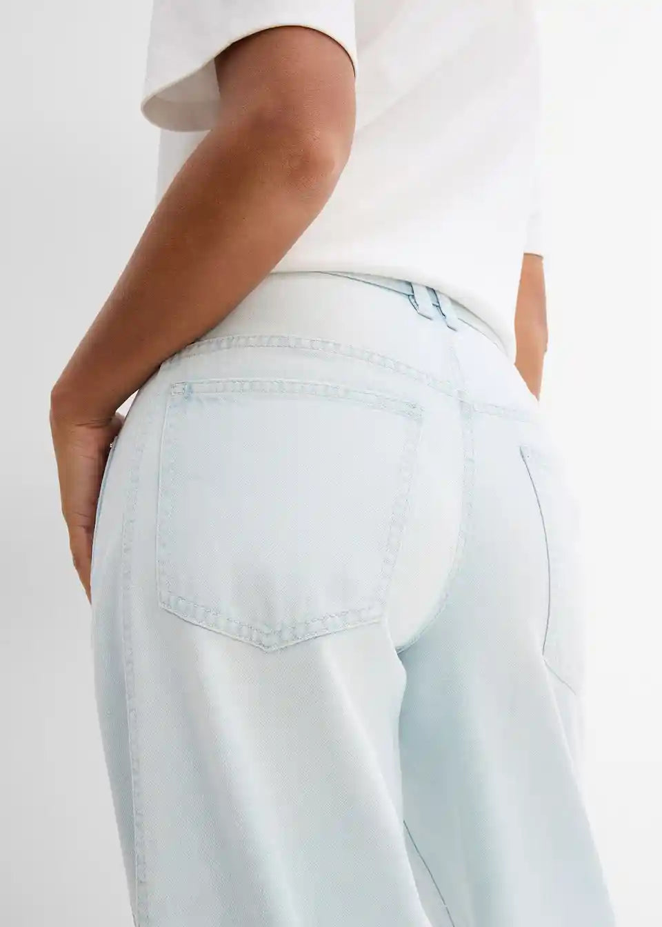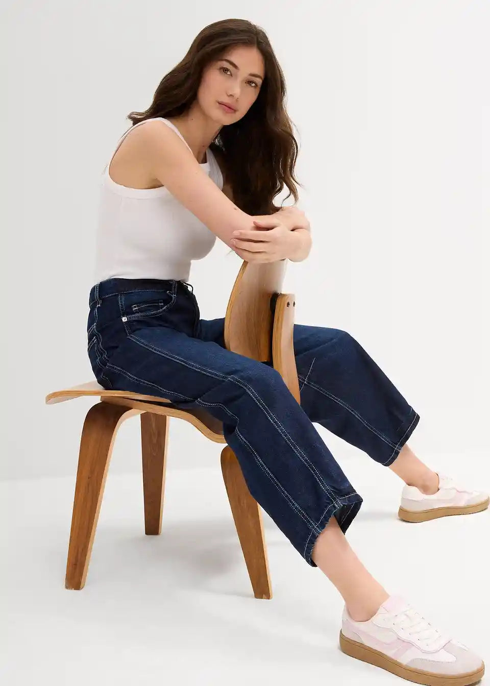 5-džepne traperice od izuzetno laganog low stretch trapera. Ležeran kroj s voluminoznim, zaobljenim nogavicama od bokova do bedara i sužavanjem prema dolje. Srednje visoki struk i skraćena nogavica. Unutarnja duljina nogavice u veličini 42 cca 70,5 cm, perivo u perilici
