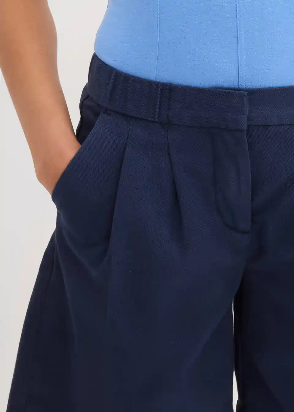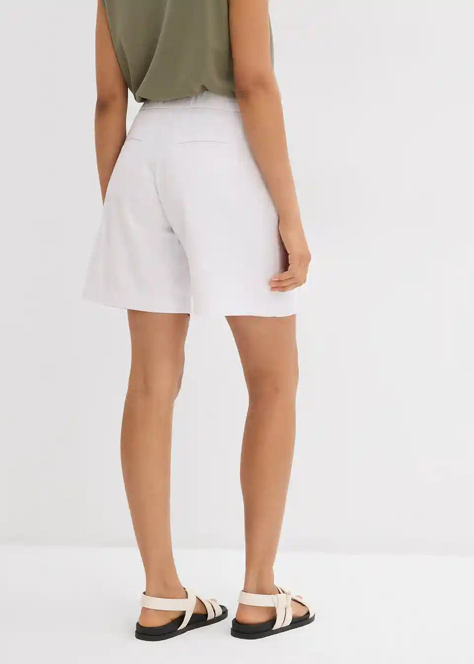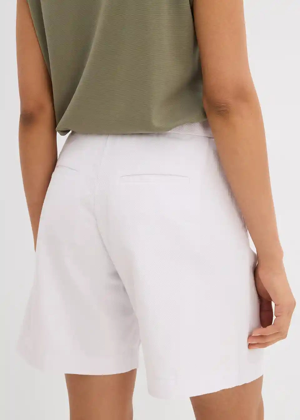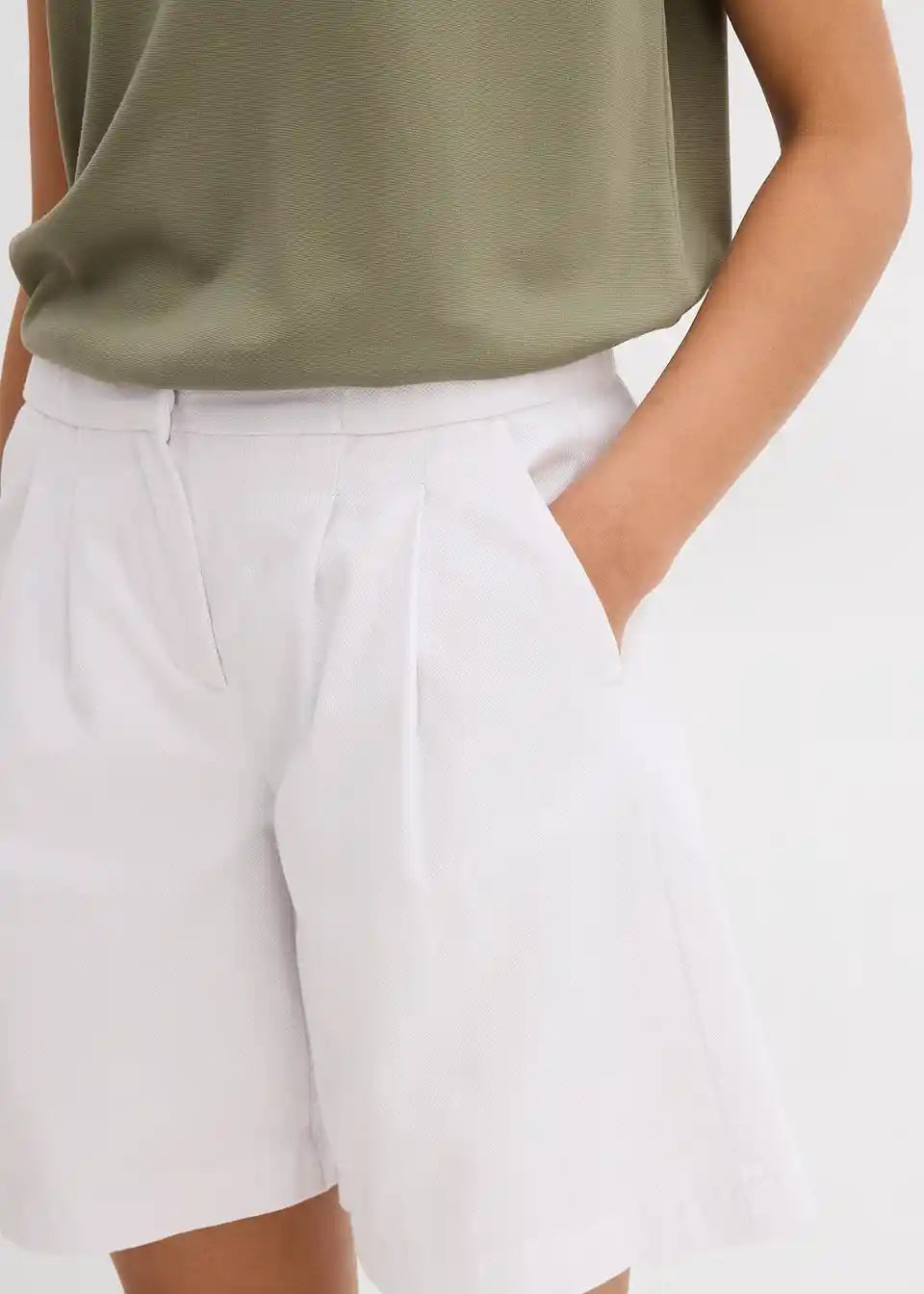 Bermuda hlače sa srednje visokim strukom, djelomično elastičnim pojasom i bočnim džepovima.