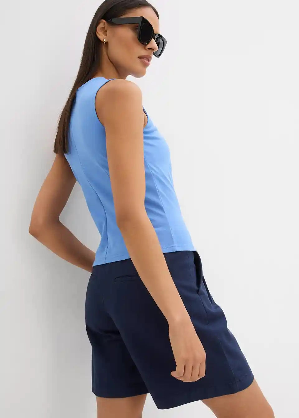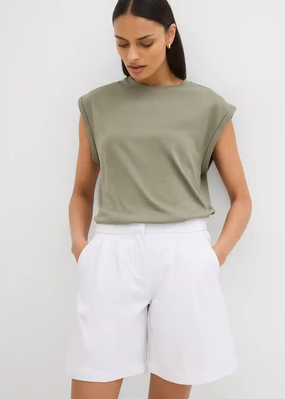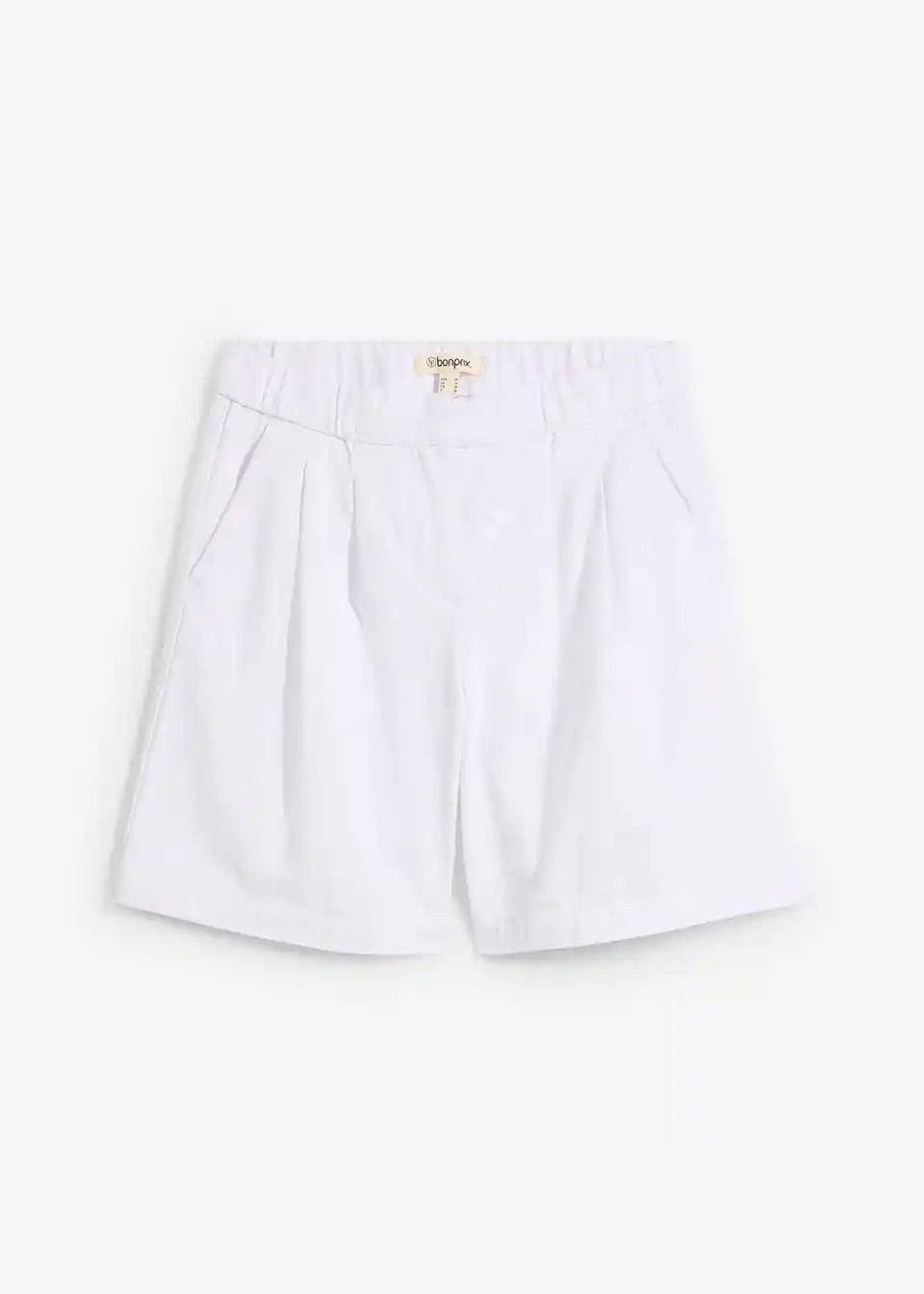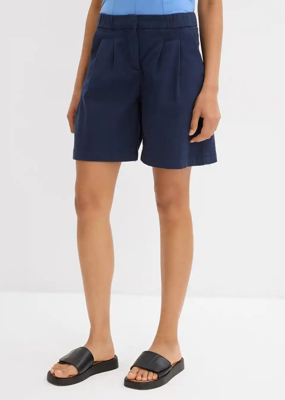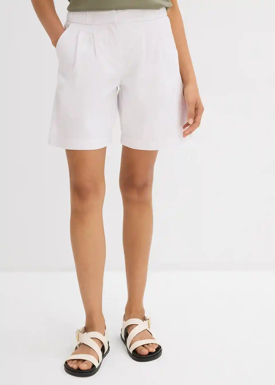 Bermuda hlače sa srednje visokim strukom, djelomično elastičnim pojasom i bočnim džepovima.