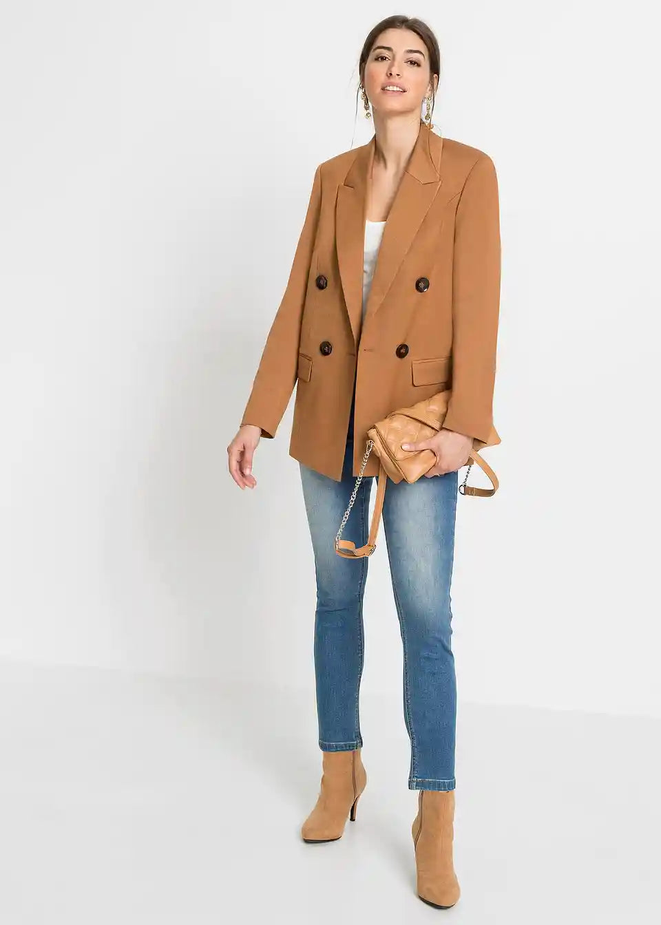 Karisamtni blazer s dekorativnim gumbima.