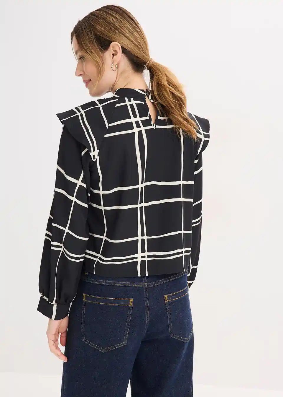 moderna printana bluza sa stajajućim ovratnikom i kopčanjem na gumb straga