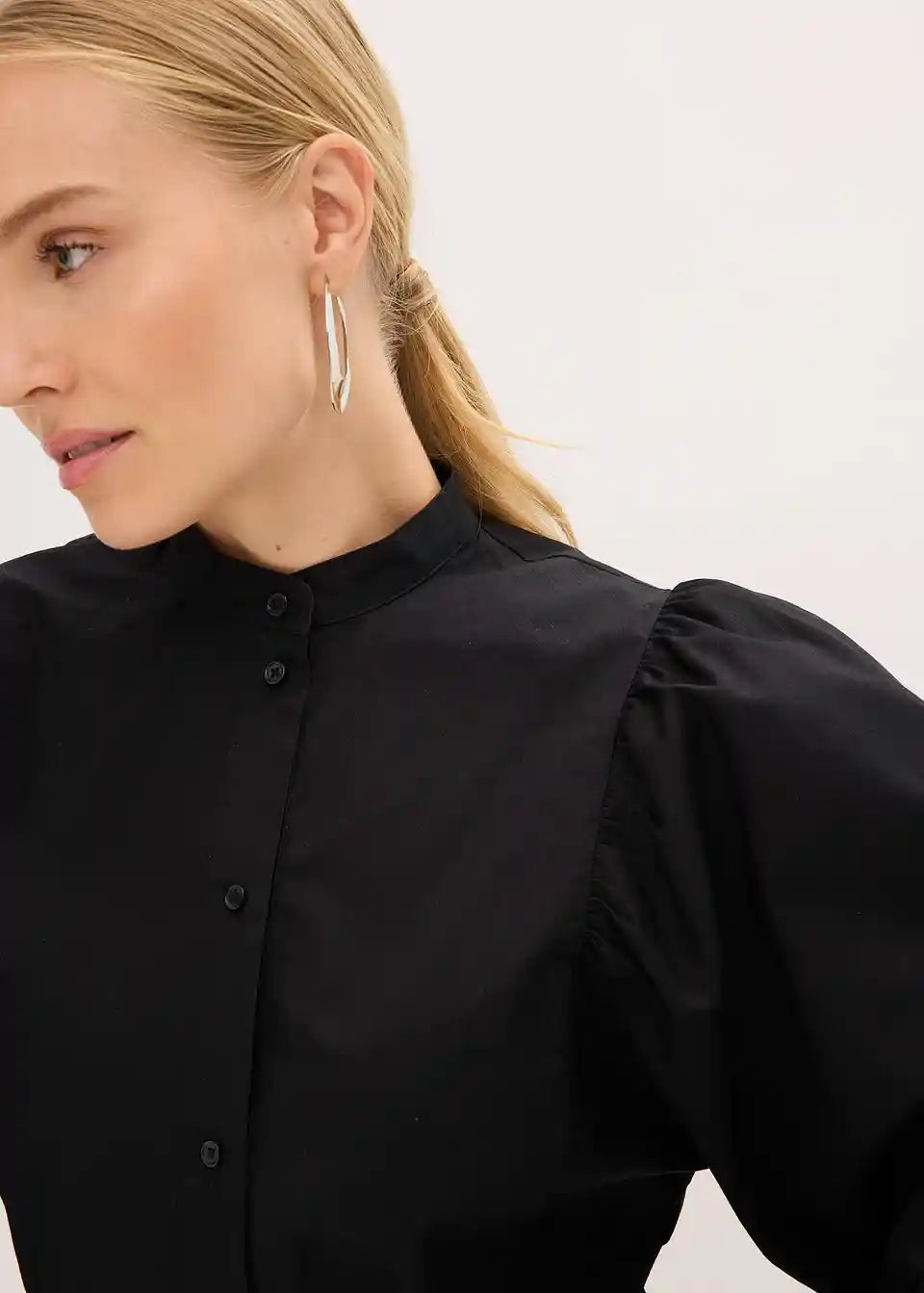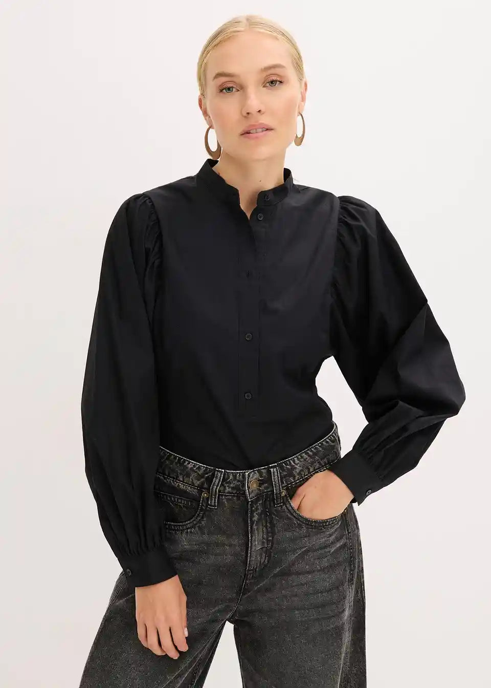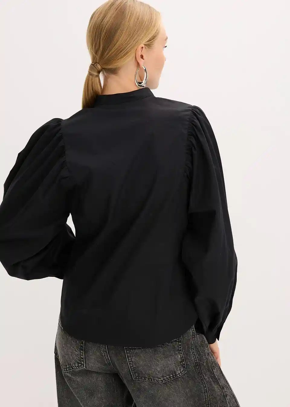 Bluza s voluminoznim rukavima i malim ovratnikom s gumbima