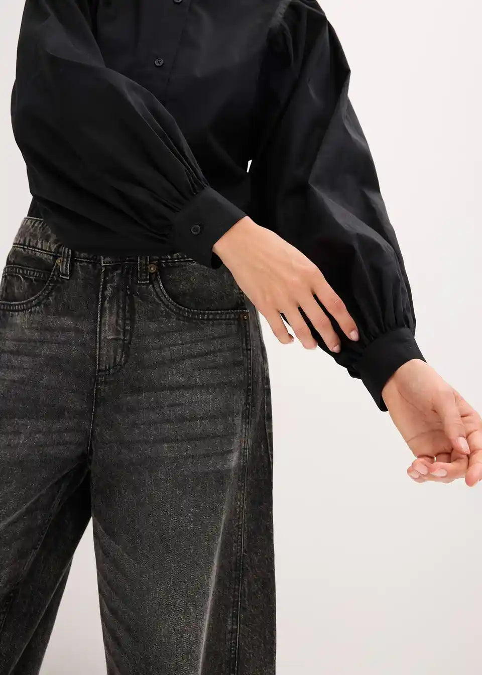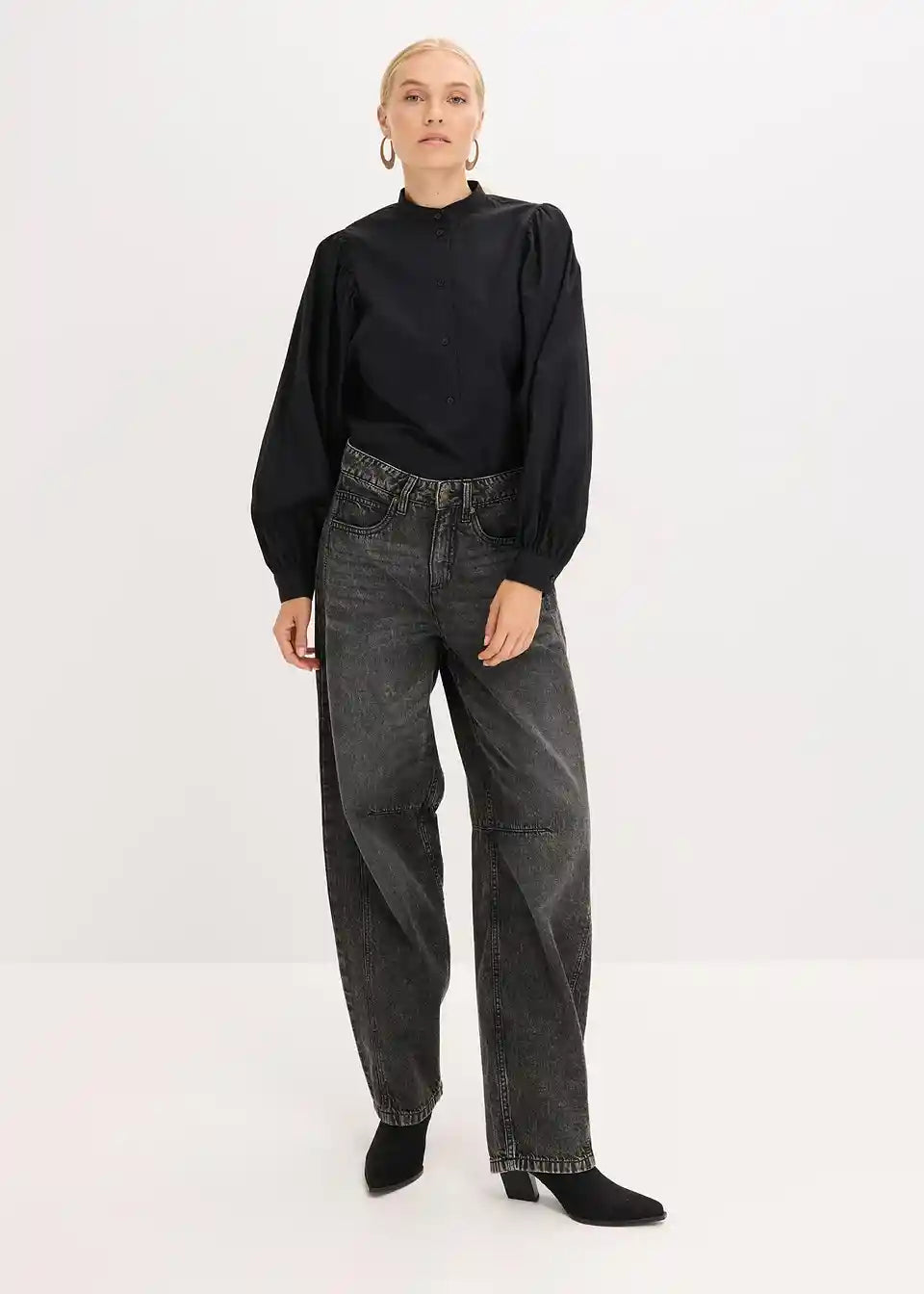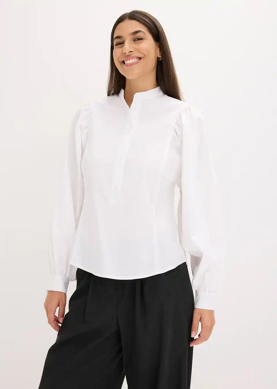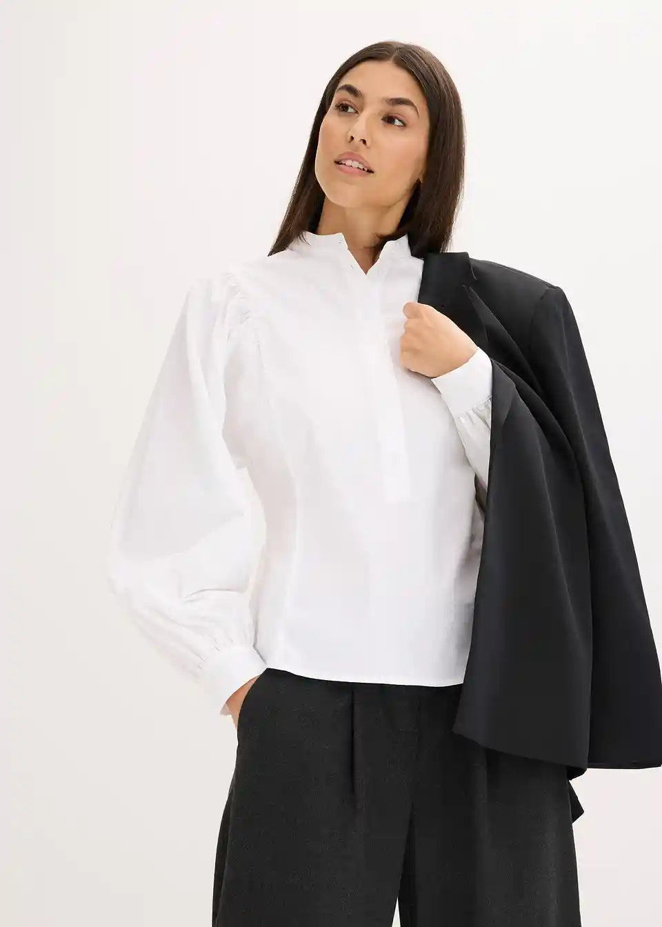 Bluza s voluminoznim rukavima i malim ovratnikom s gumbima