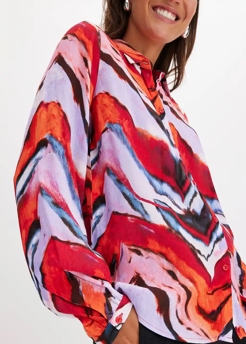 moderna bluza s prednjim kopčanjem na gumbe i lagano voluminoznim rukavima