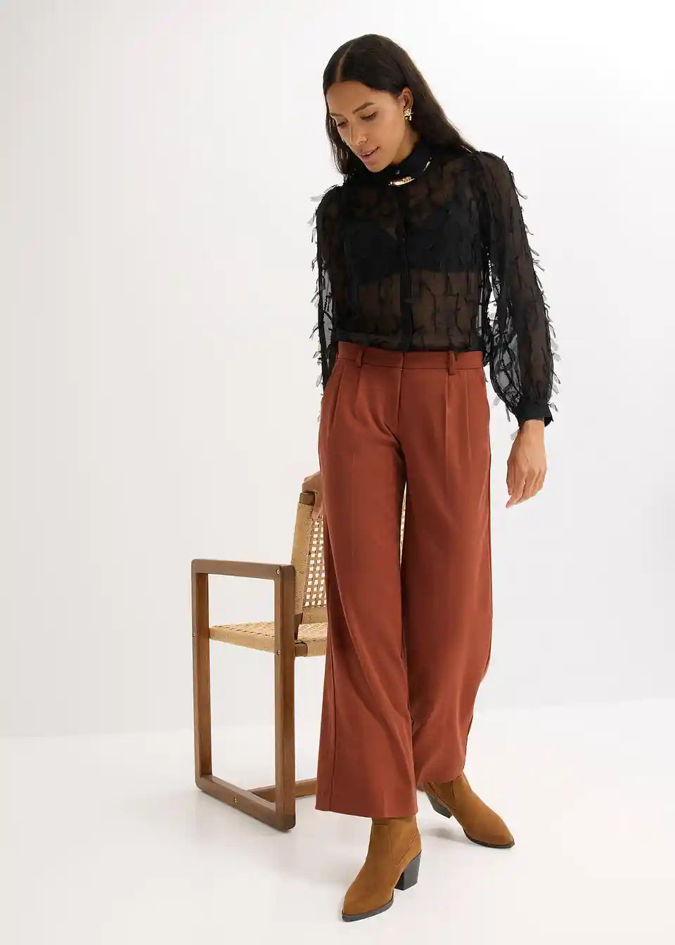 Lagano prozirna moderna bluza od strukturiranog materijala s resicama.