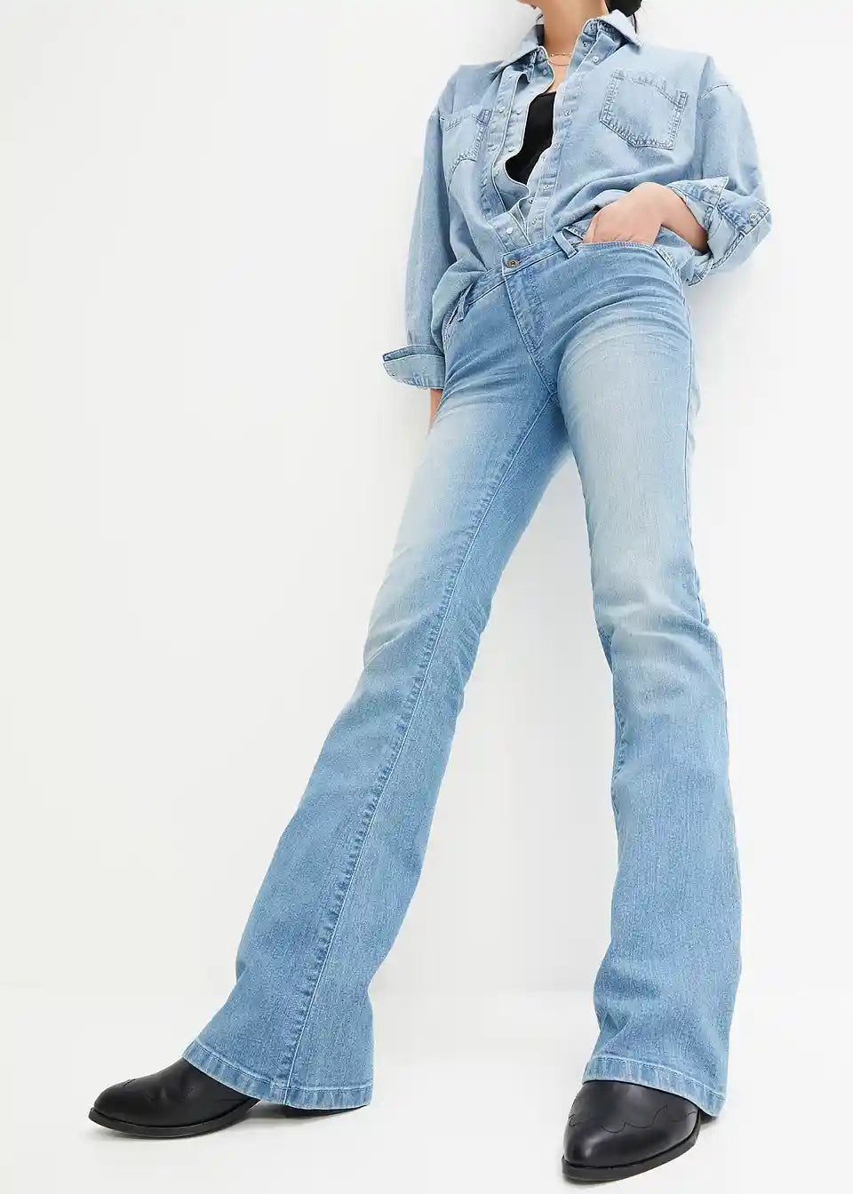 Bootcut-traperice osiguravaju moderan izgled svojim cool dizajnom i savršene su za svakodnevno kombiniranje. Zbog ležernog kroja s Bootcut izgledom traperice imaju opuštenu estetiku. Lijepo ispiranje naglašeno je suptilnim kontrastnim šavovima i naborima na prednjem dijelu bedara. 5-džepni model zatvara se gumbom i patentnim zatvaračem. Kombinirane s ležernim sweatshirtom i gležnjačama, brzo stvaraju moderan outfit.