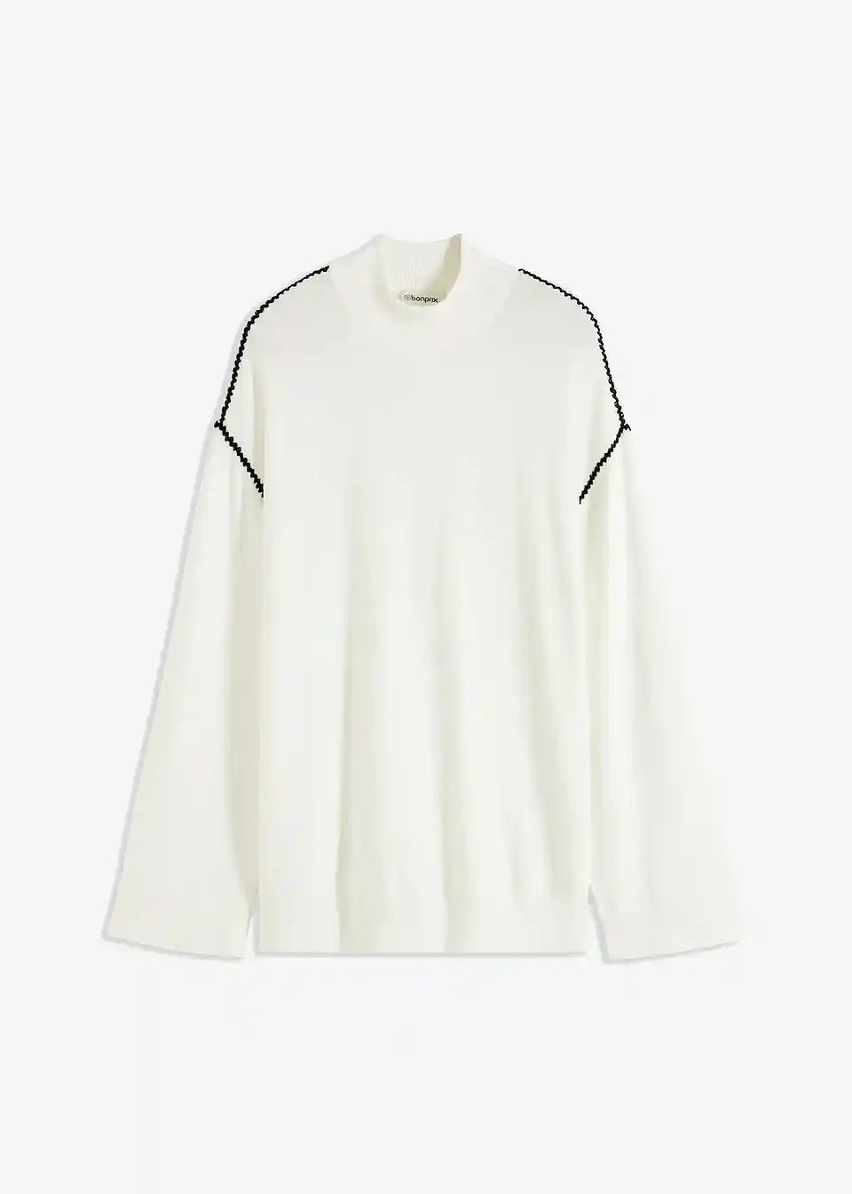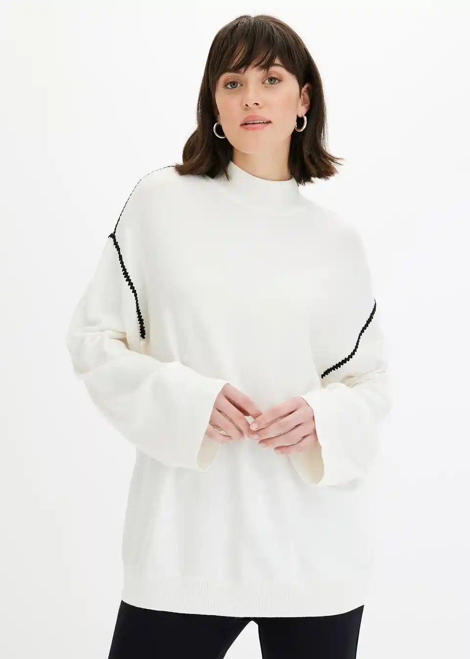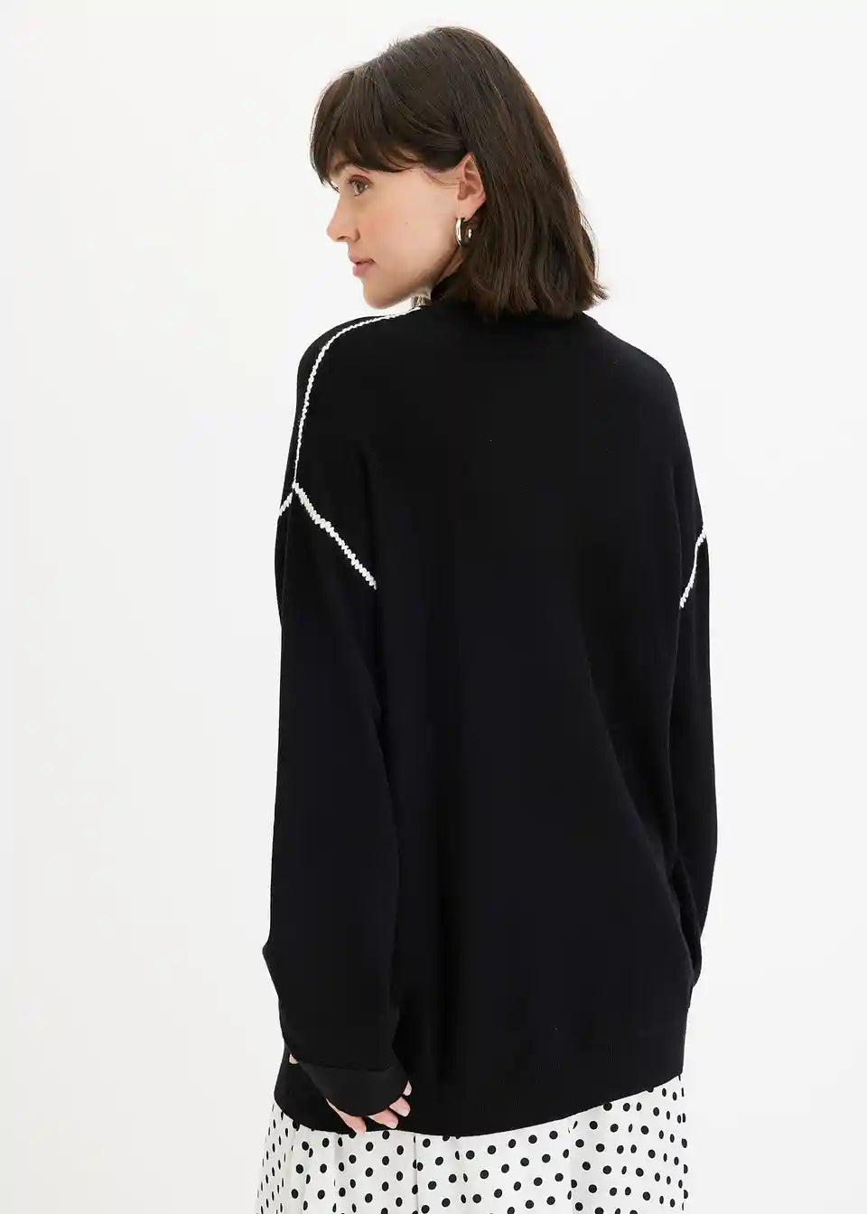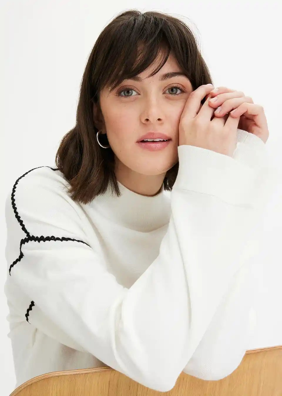 Jednobojni pulover s kontrastnim ukrasnim šavovima