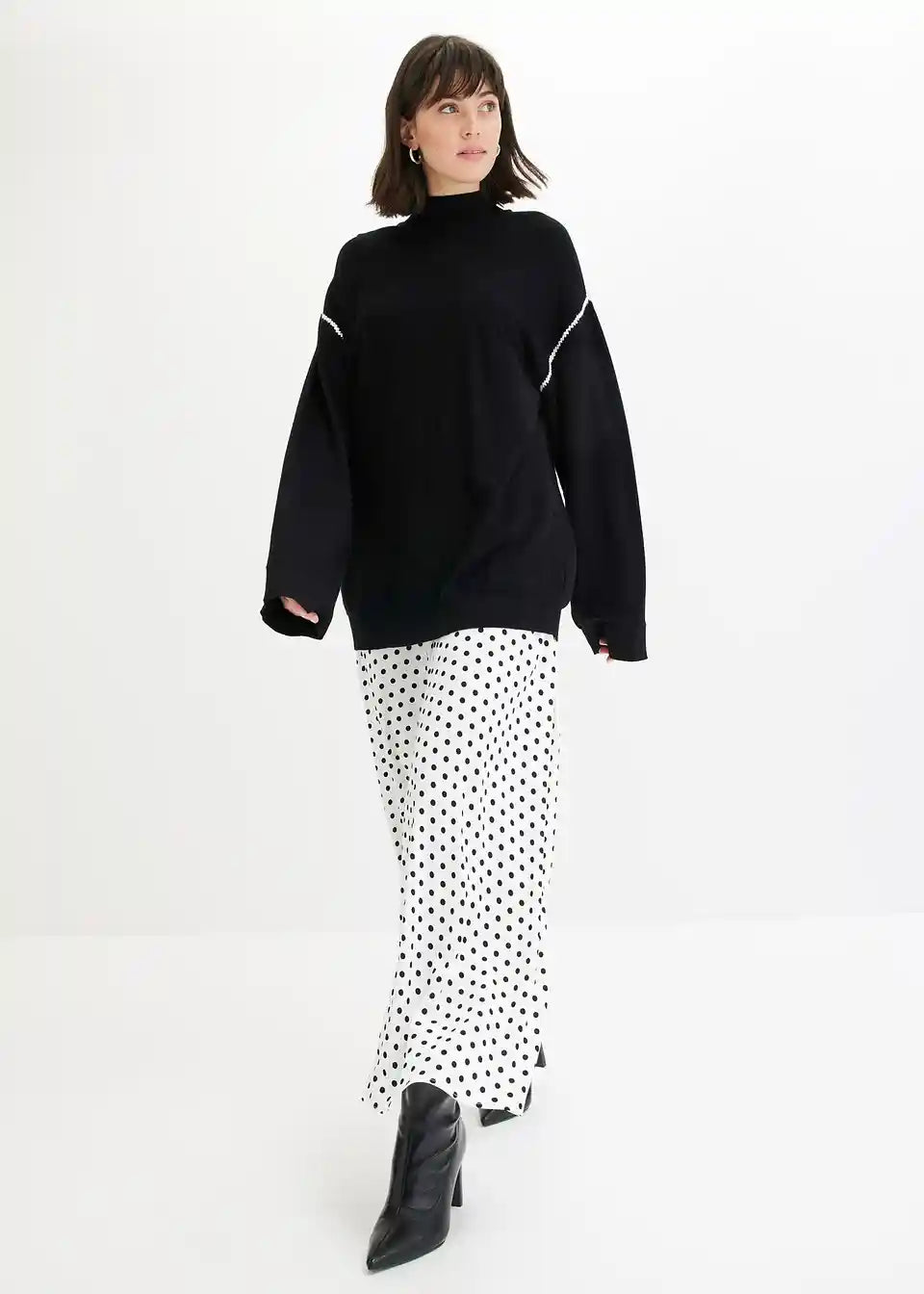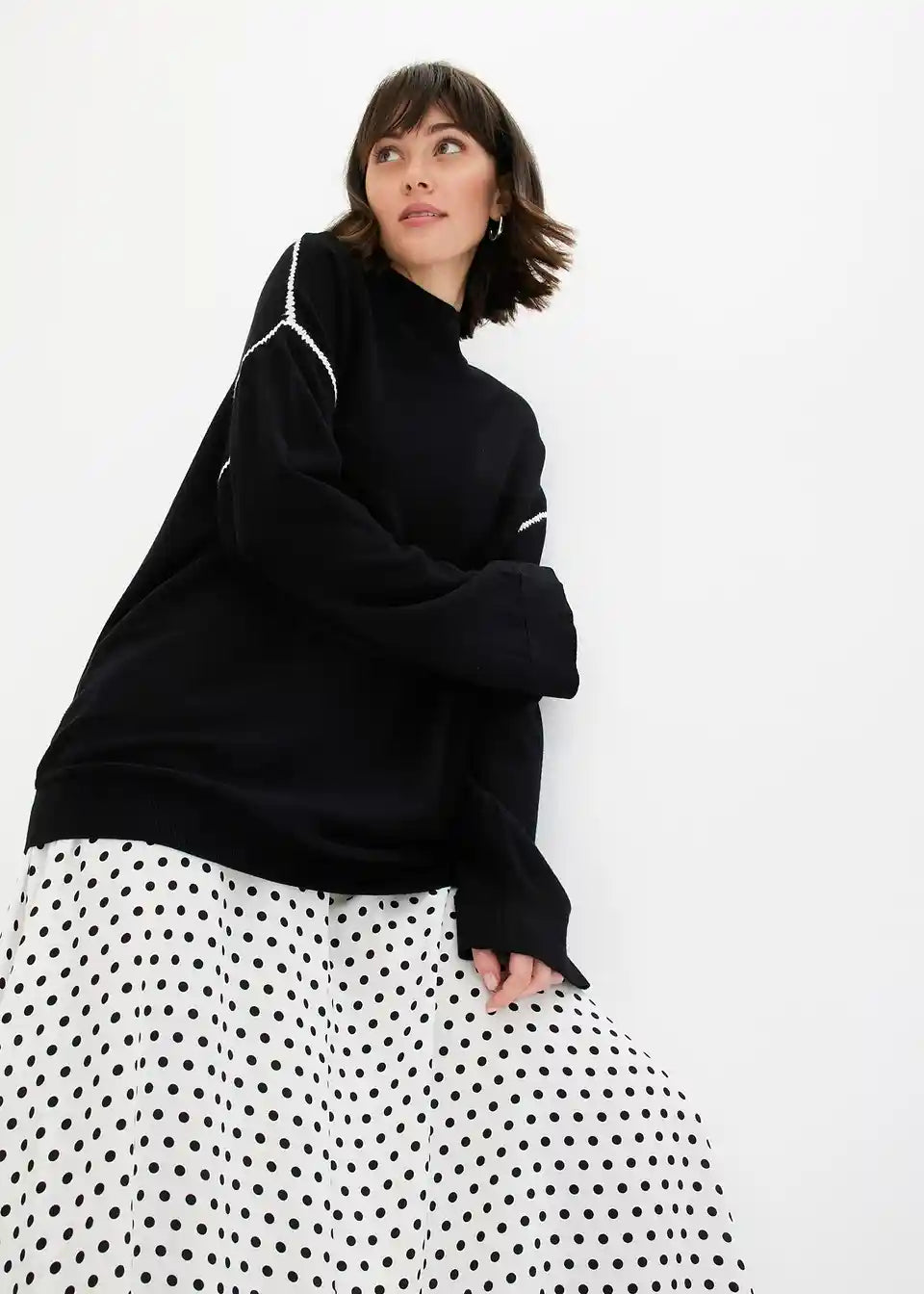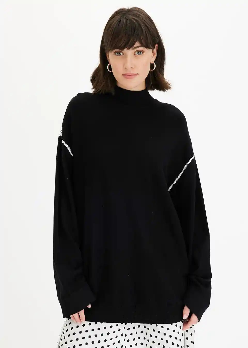 Pulover kvadratnog kroja s ukrasnim šavovima od materijala s udjelom viskoze