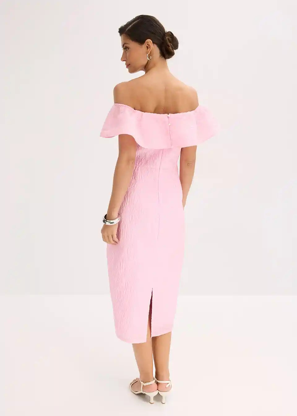 Haljina s carmen izrezom od žakard uzorka sa sjajem