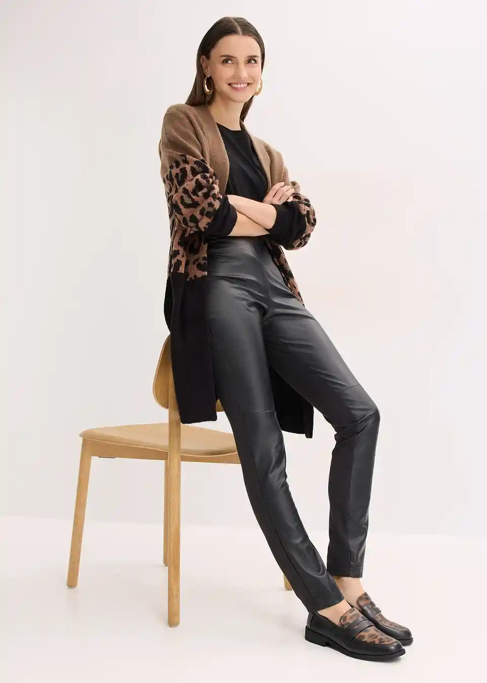 moderna duga pletena jakna bez kopčanja s leopard Jacquard uzorkom