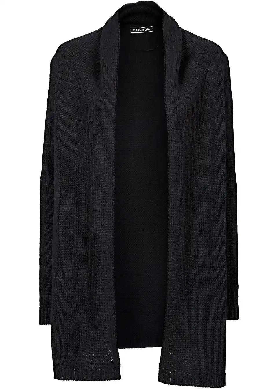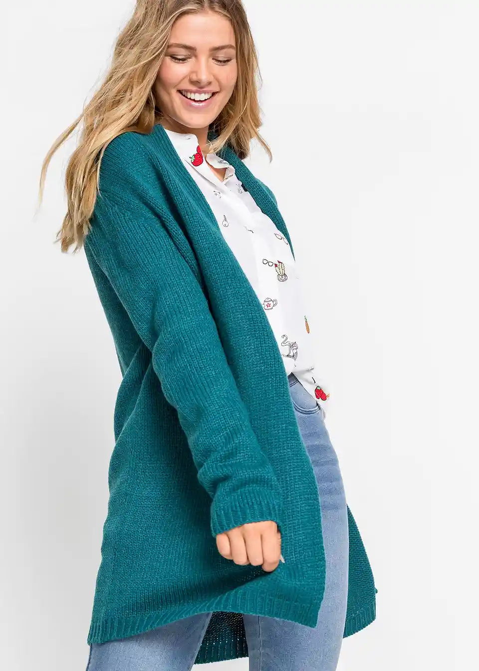 Omiljeni komad za hladnije dane je ova trendi pletena jakna. Zahvaljujući laganom oversize kroju, jakna opušteno pristaje uz tijelo. Dugi rukavi i rub su rebrasto završeni, a ovratnik je moderno preklopljen. Jakna se može ležerno nositi preko stiliziranih topova ili majica te uz skinny traperice.