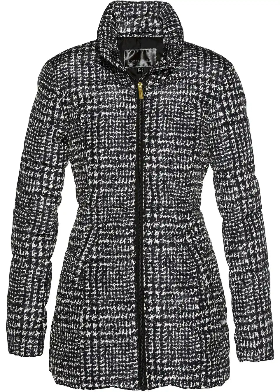 Elegantna dugačka prošivena jakna s visokim ovratnikom