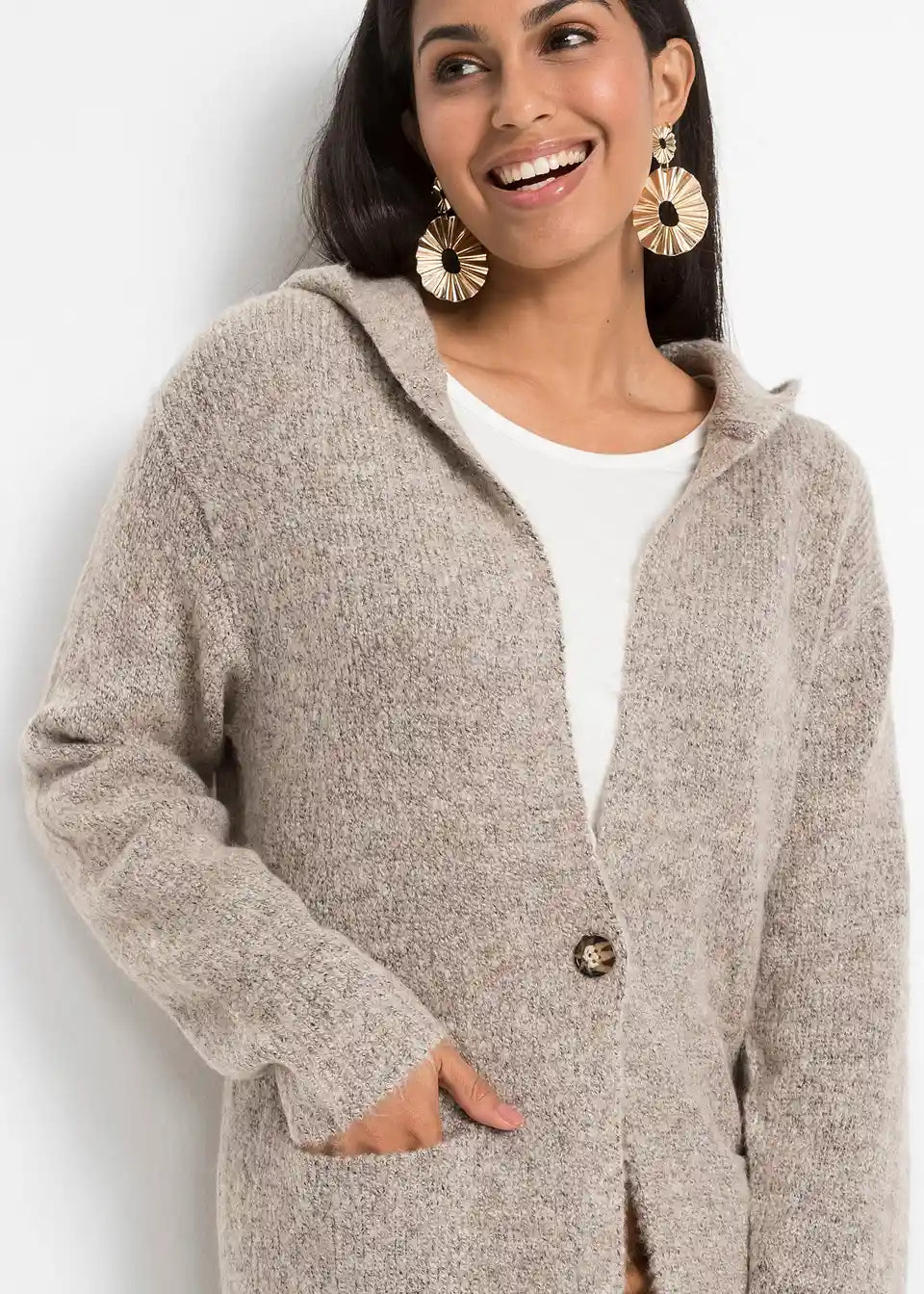 Mekani dugi pleteni kardigan s praktičnom kapuljačom.