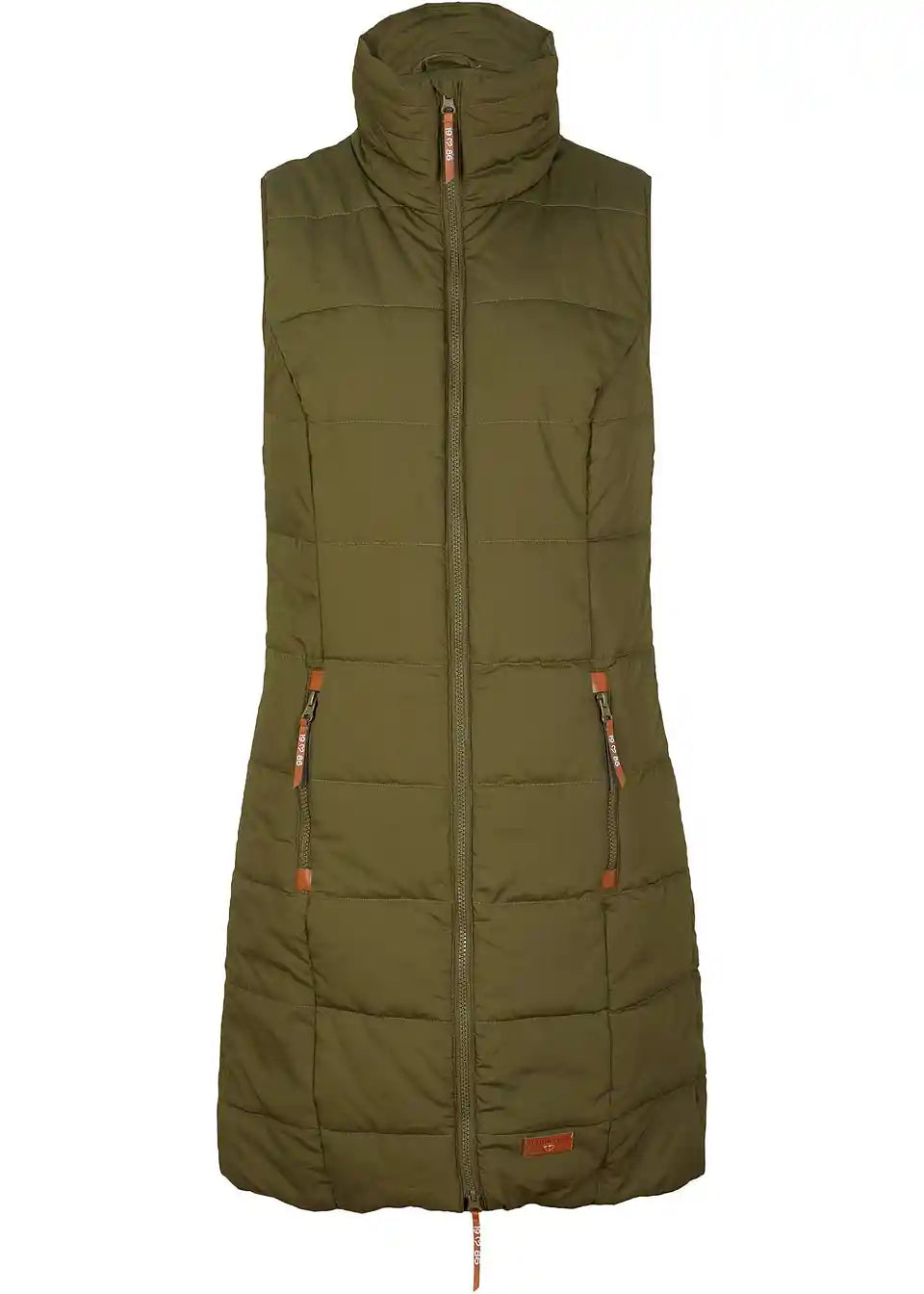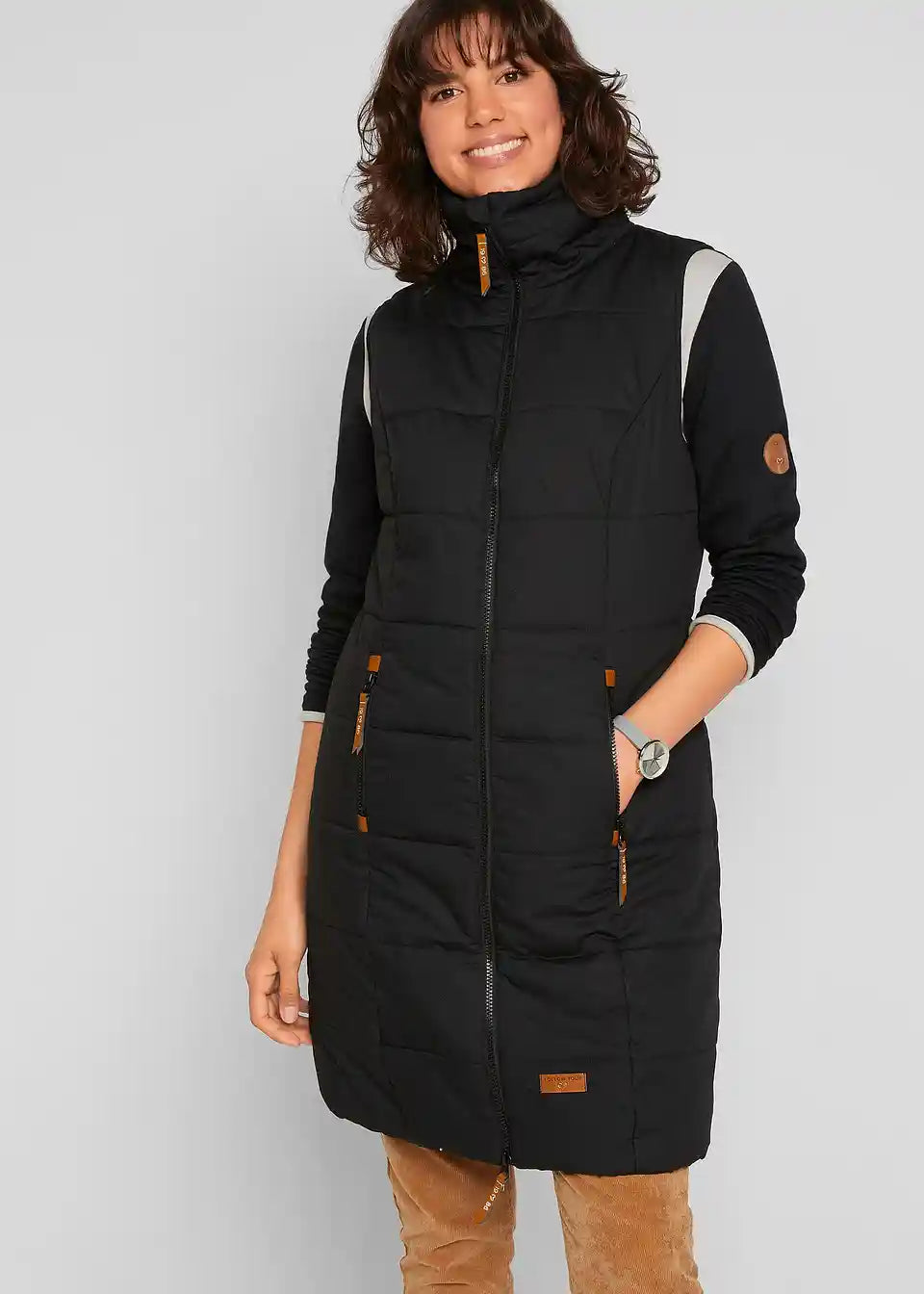 Praktičan, podstavljen dugi prsluk s podignutim ovratnikom