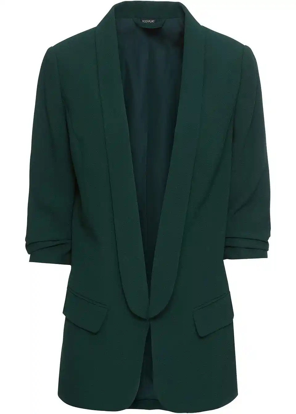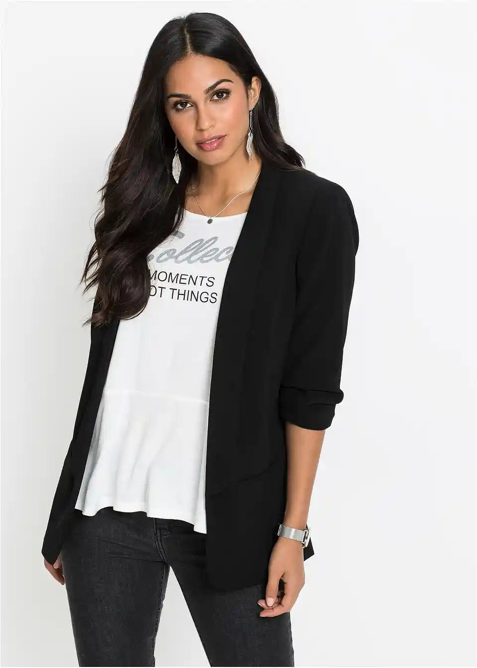 Ležerno krojeni dugi sako s naboranim rukavima i rever ovratnikom.