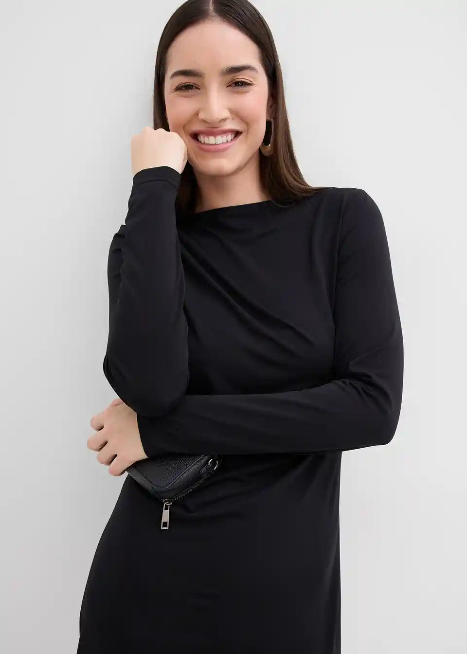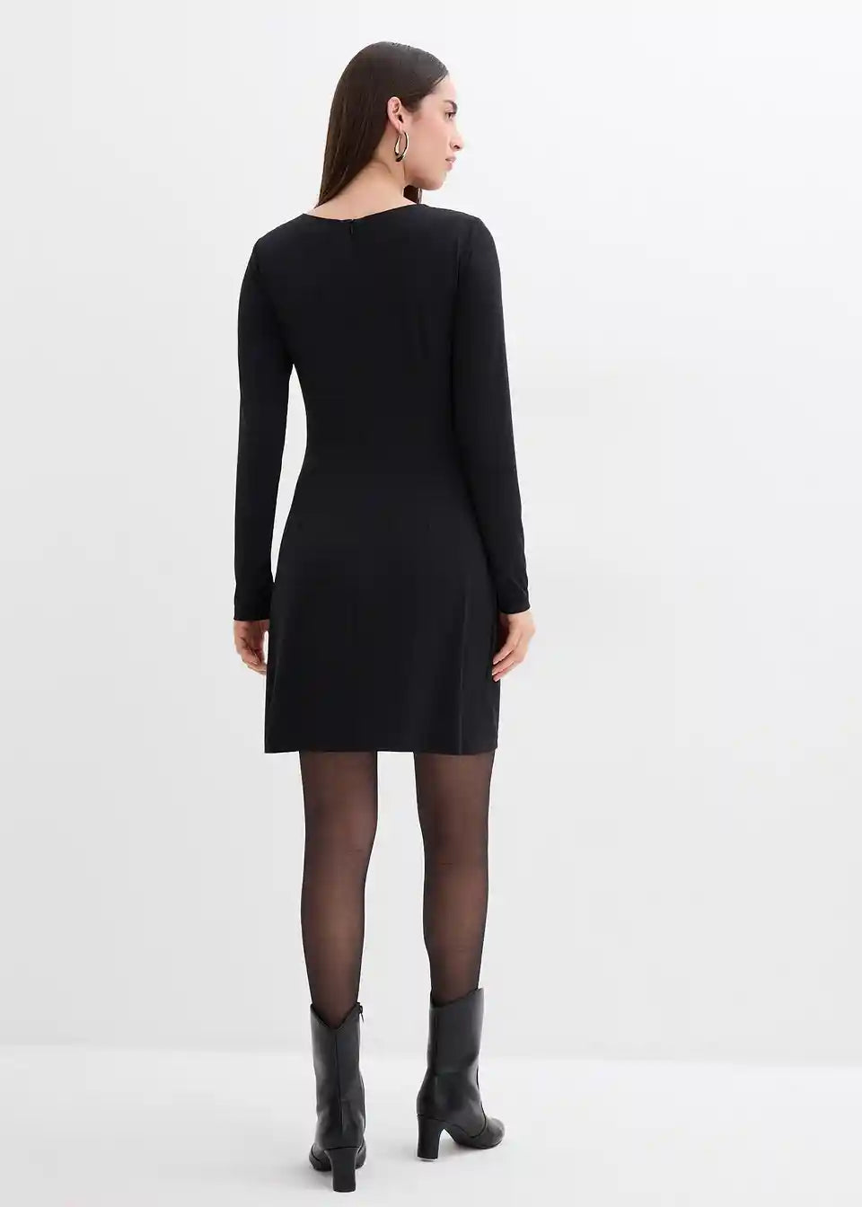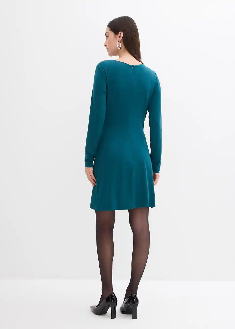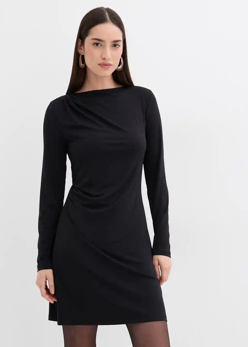 Drapirana mini haljina s naglaskom na struk i U-Boot izrezom. Skriveni patentni zatvarač straga