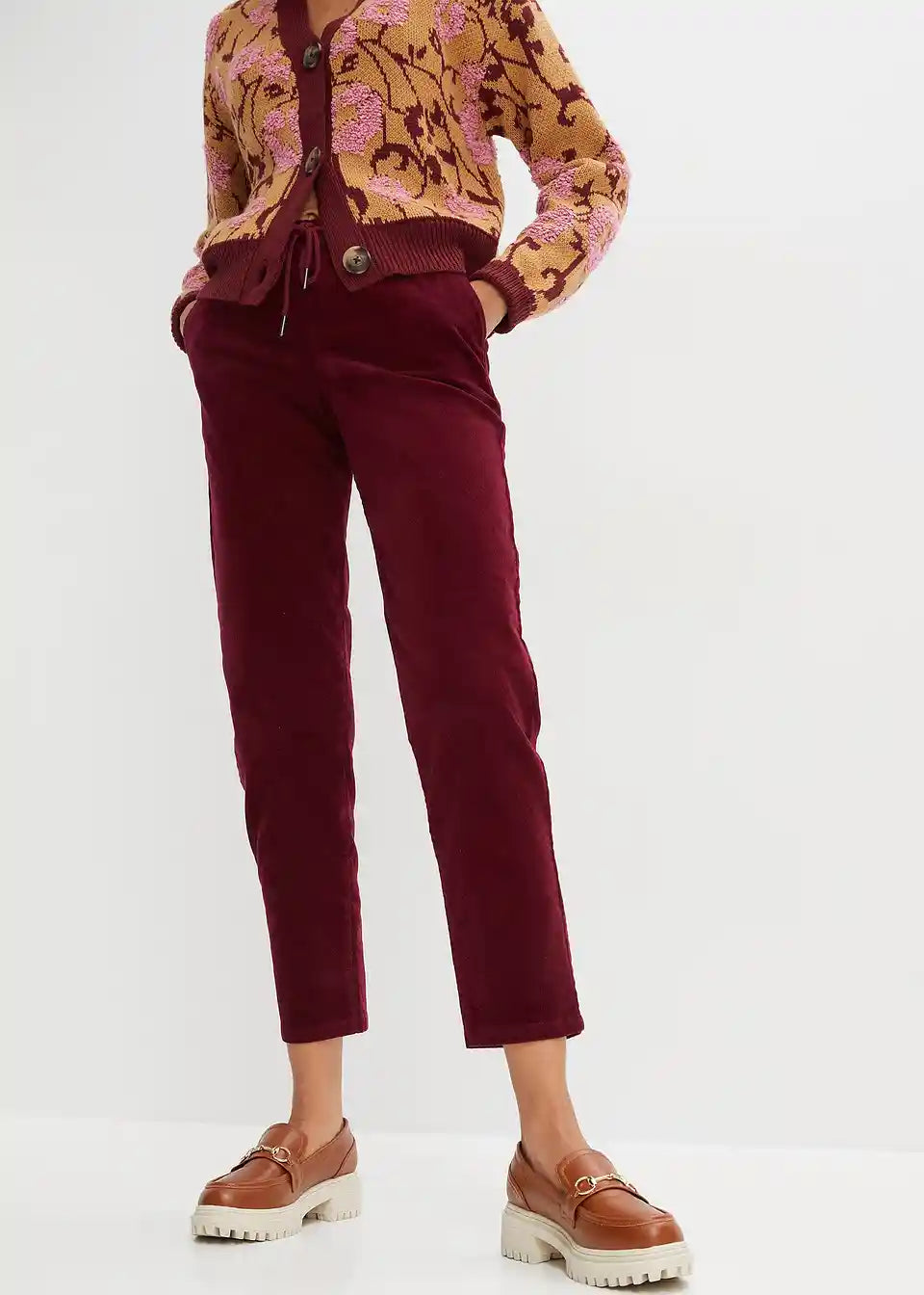 Hlače od samta s vrpcom za regulaciju širine