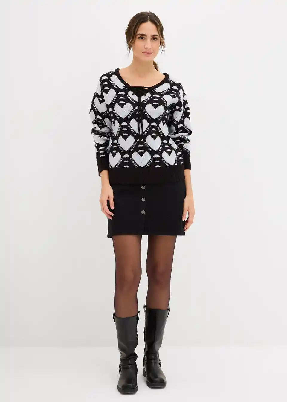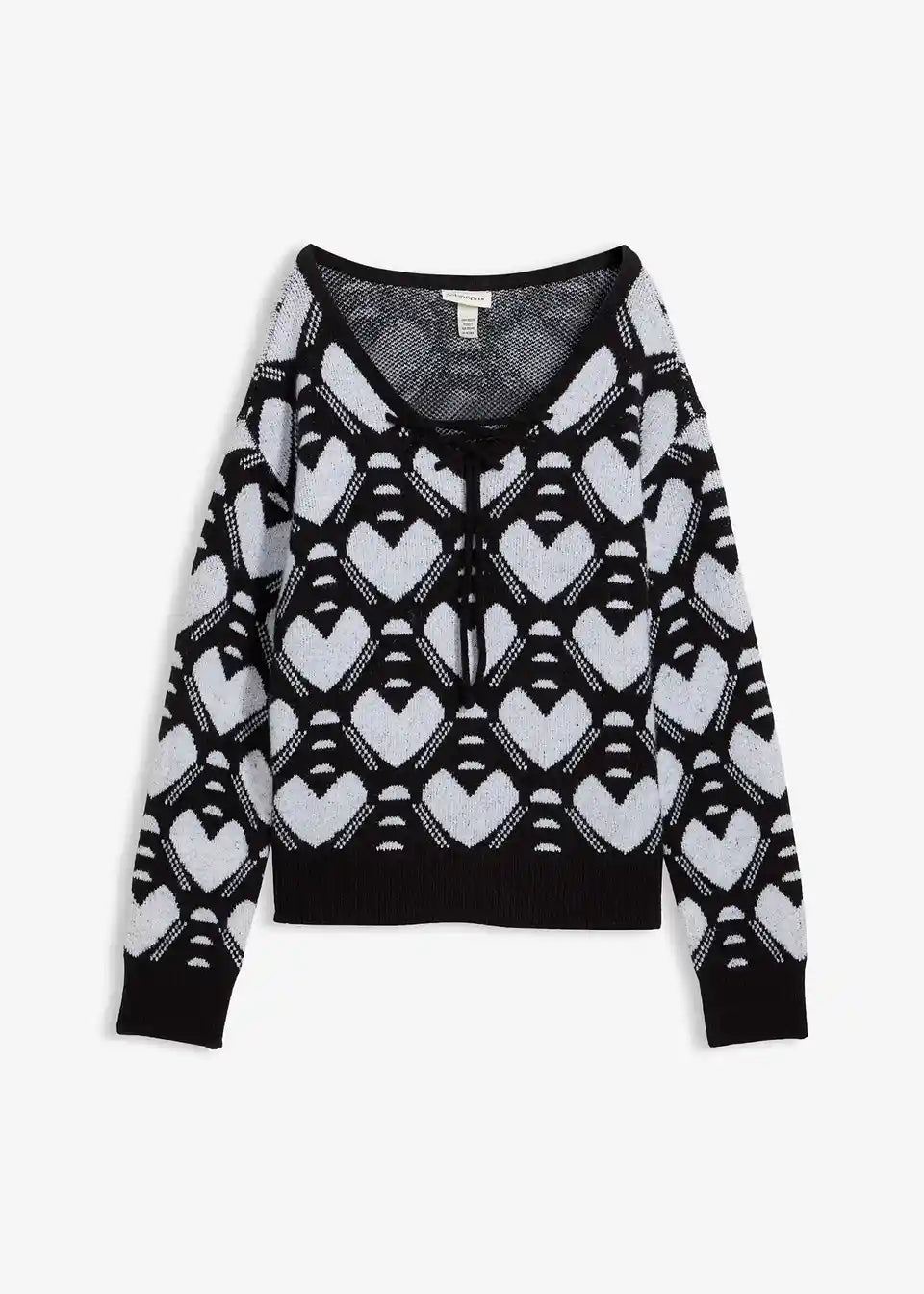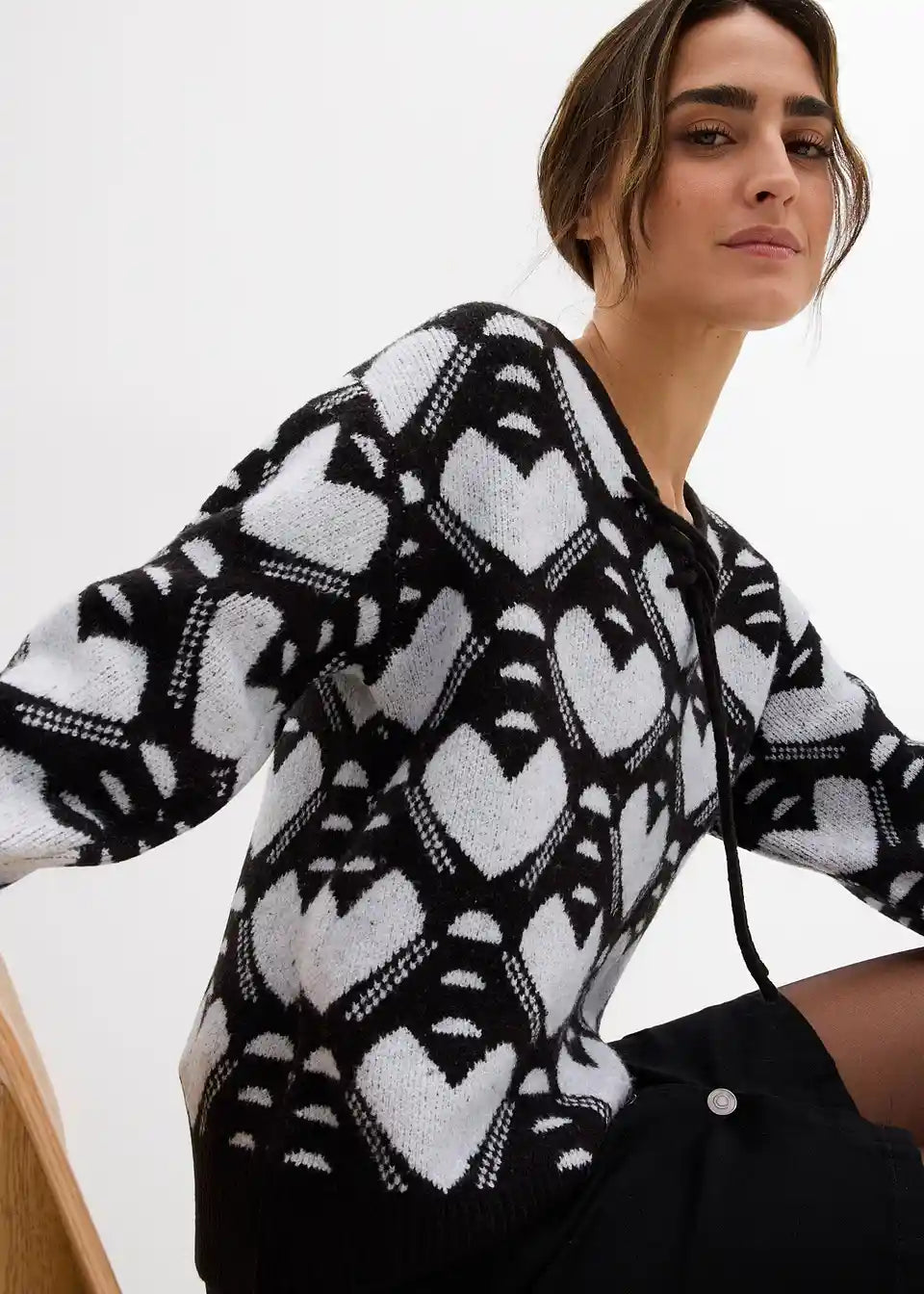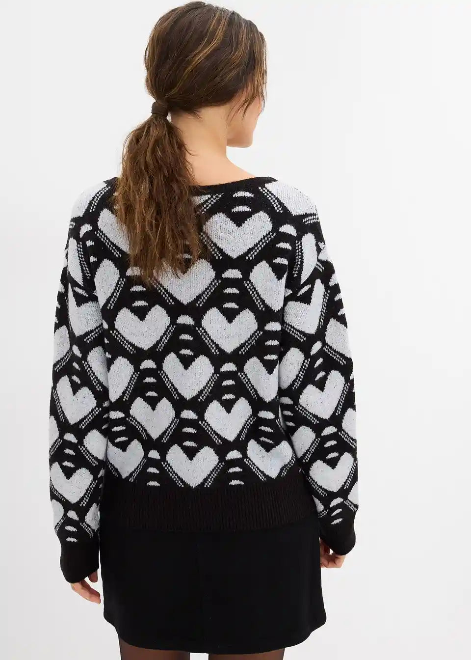 Moderan Jacquard fini pleteni pulover s motivom srca