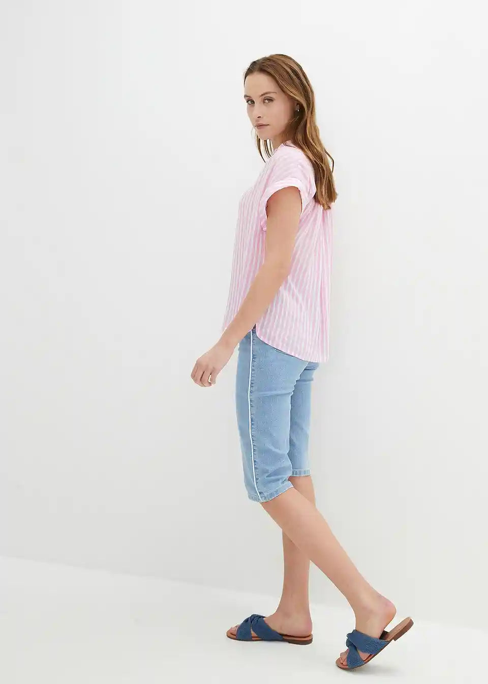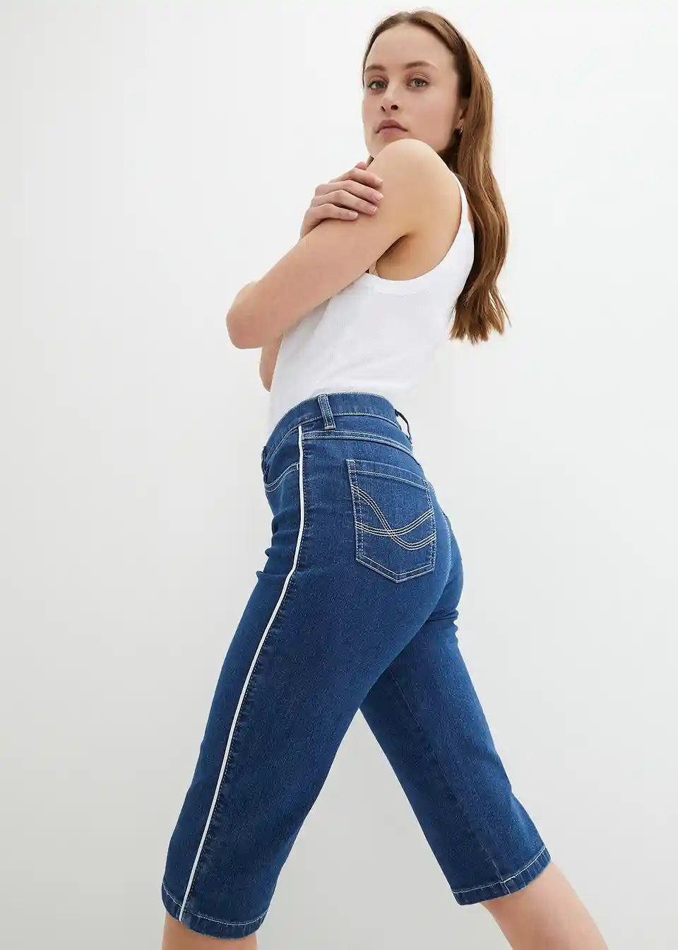 Uske bermuda traperice s rastezljivim materijalom i bočnim prugama