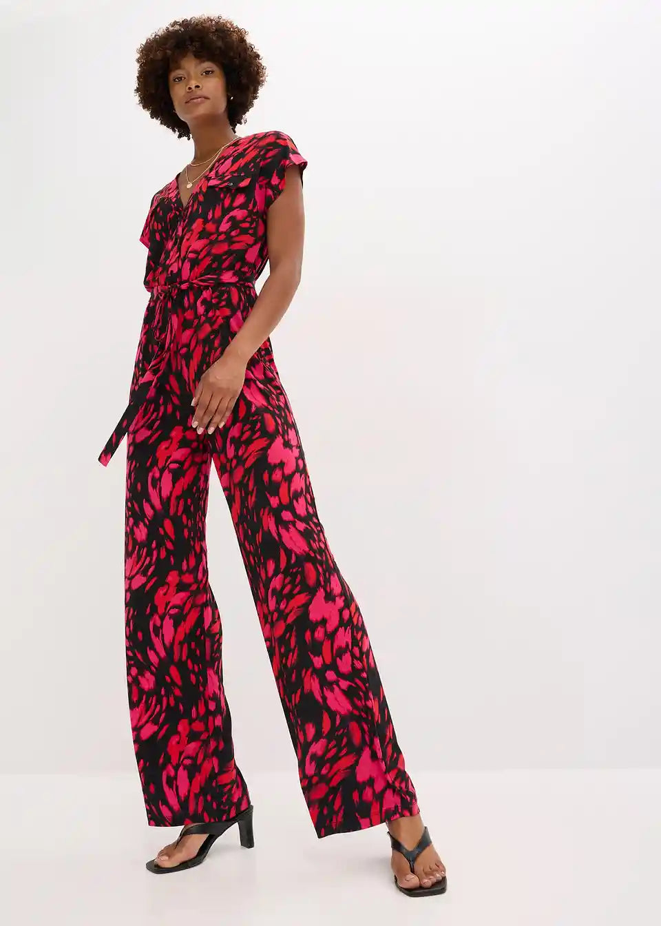 moderno tiskan Jersey-jumpsuit s V-izrezom