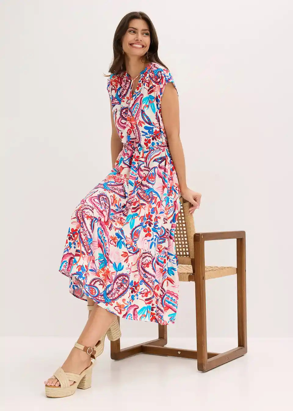 Ležerna, široka ljetna haljina s pojasom za vezanje