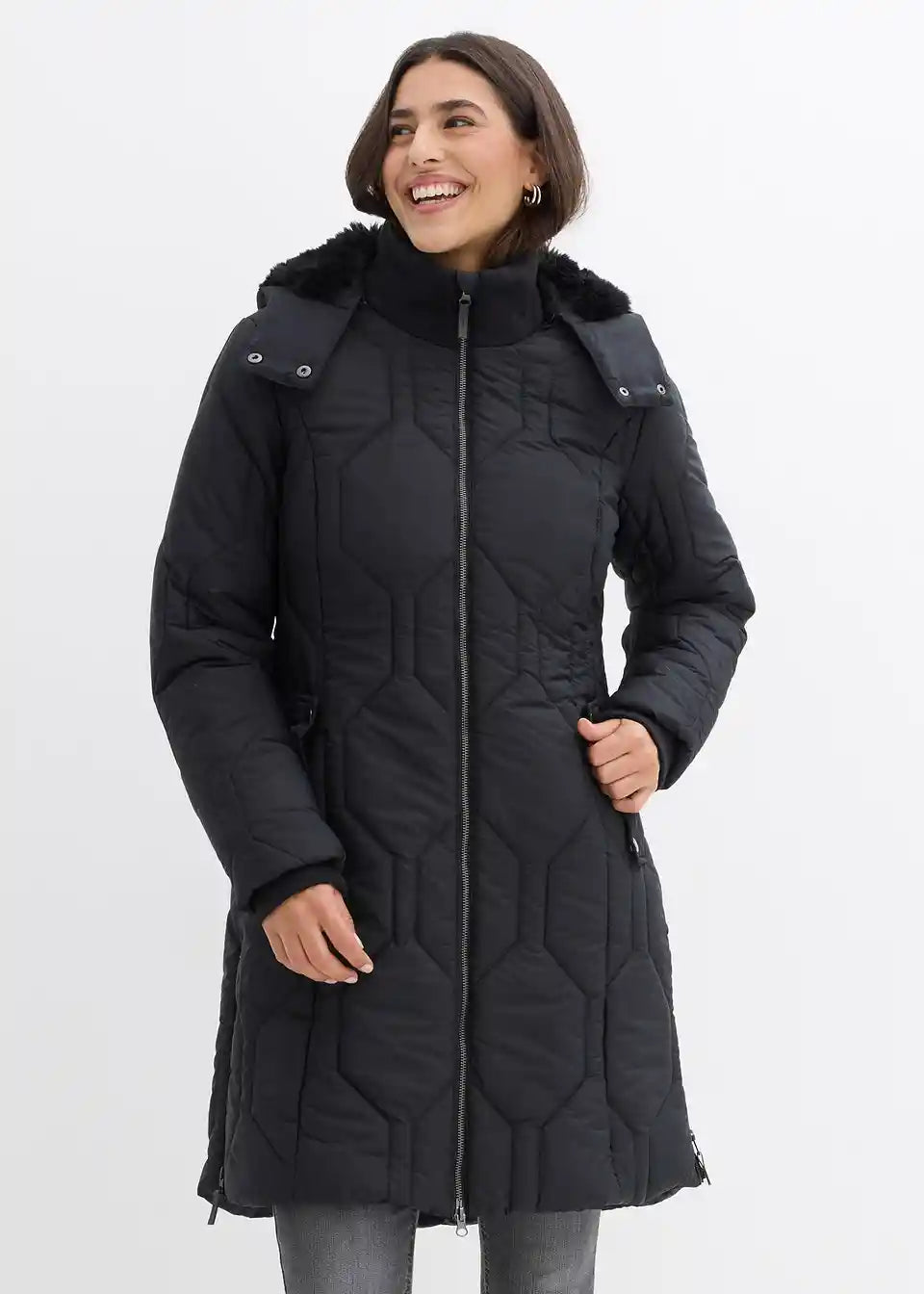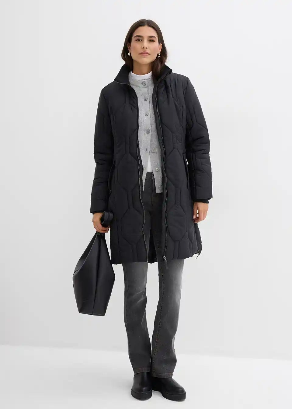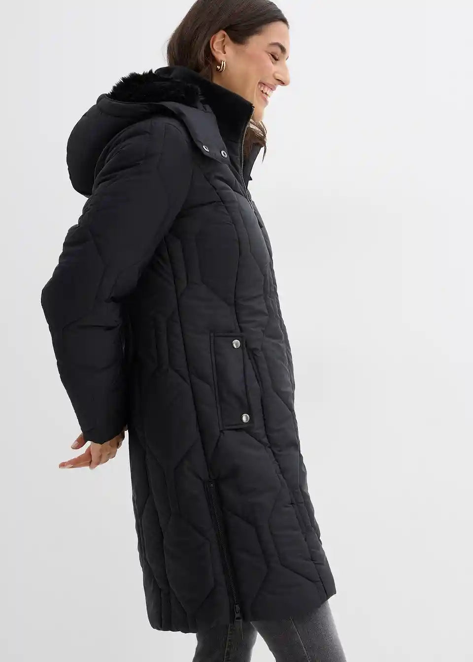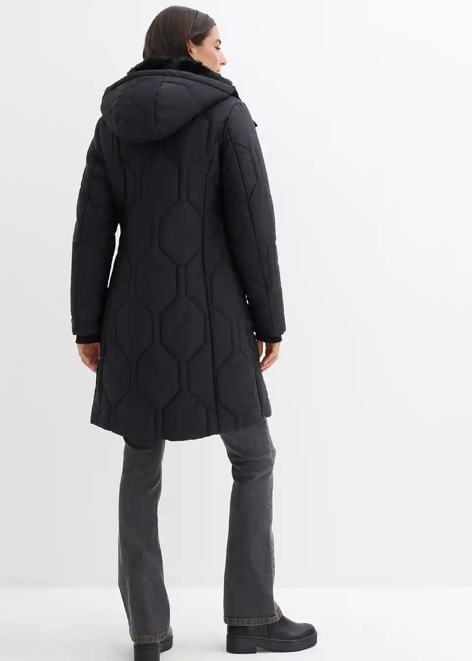 Moderan kratki kaput s kapuljačom i prošivenim uzorkom
