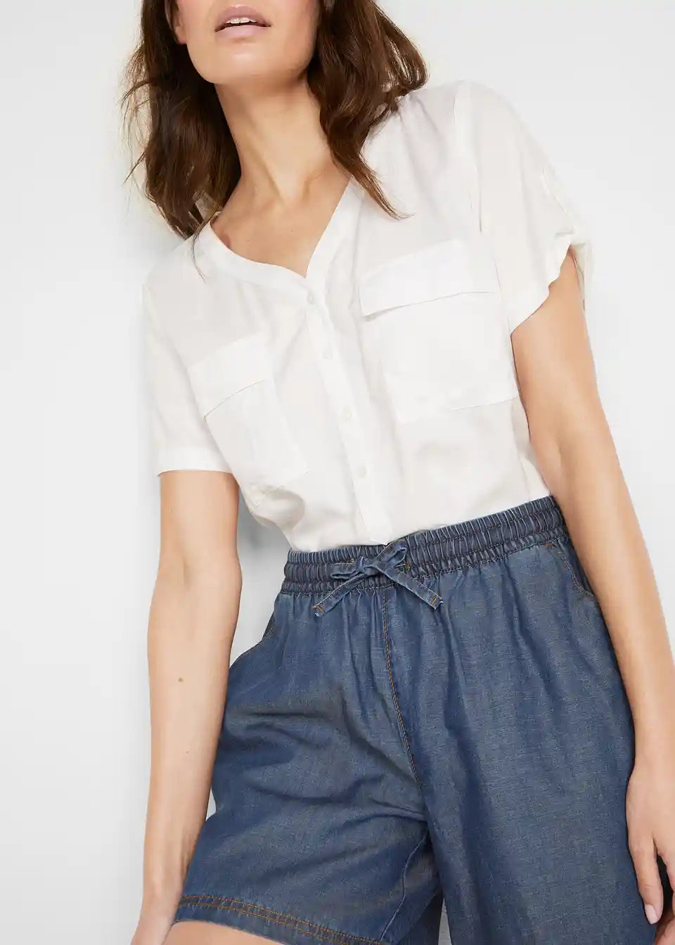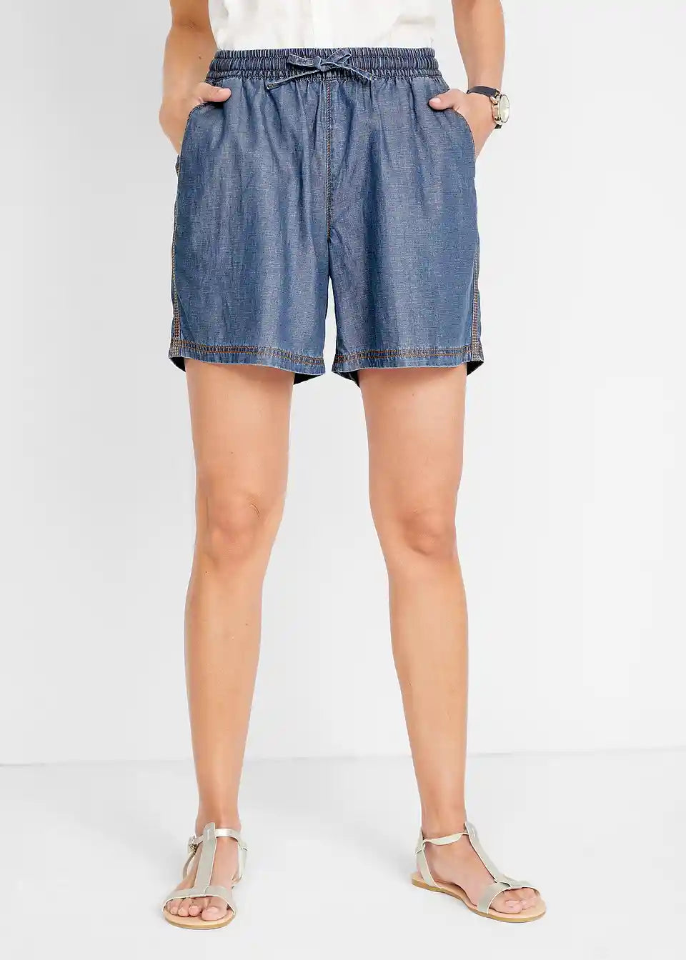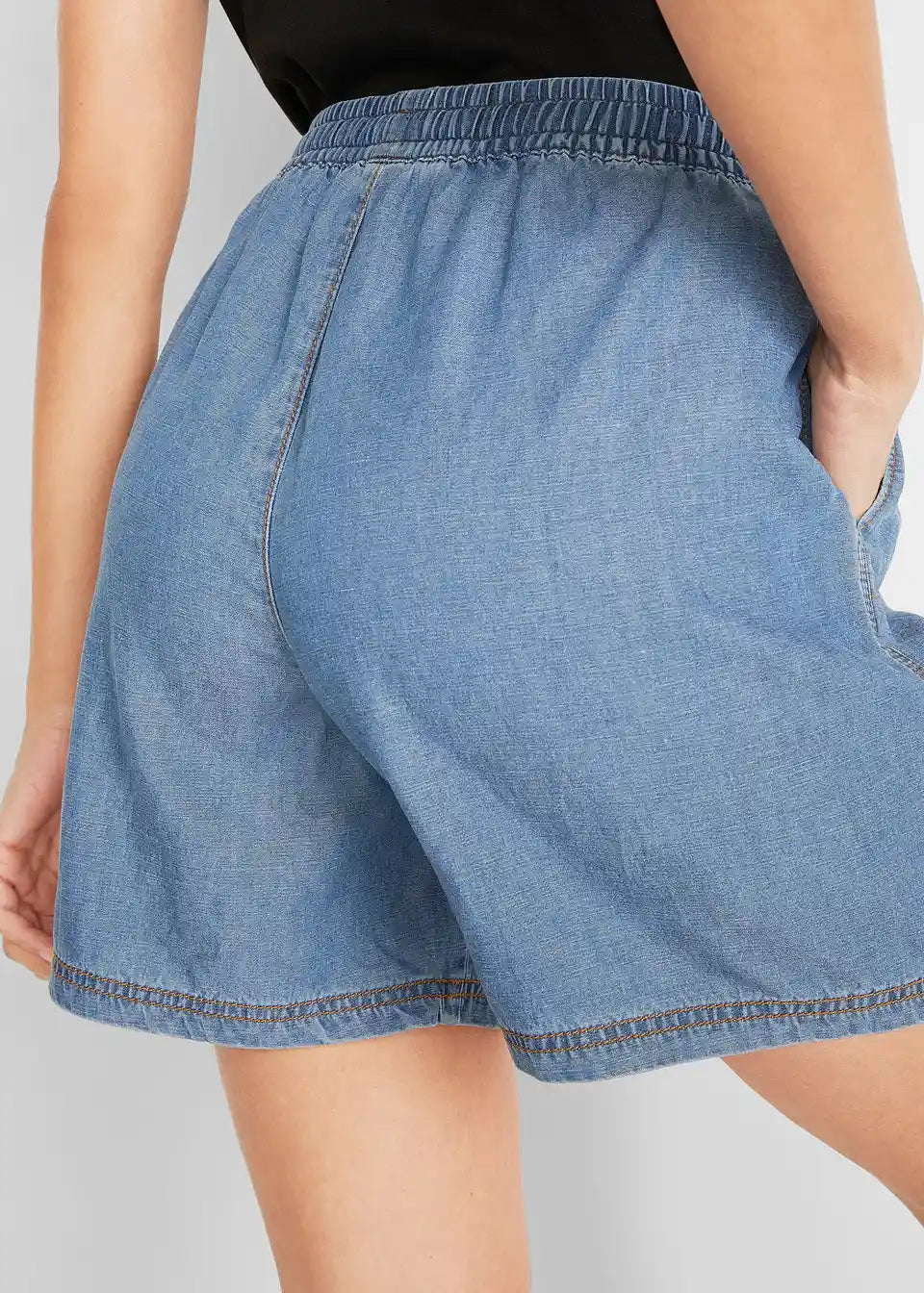 Kratke hlače od laganog denima s lanom i komotnim strukom