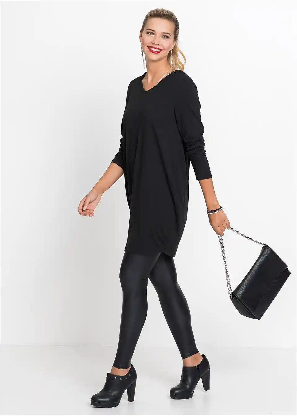 Leggings s premazom stvaraju moderan izgled kože i čine osnovu za raznolike stilove. Ovaj usko pripijen model ima ekstra široki struk. To omogućuje fenomenalan izgled i pruža nježan efekt prikrivanja. Navečer, leggings s premazom privlače pažnju u kombinaciji sa sjajnim potpeticama i topom od mreže ili čipke. Tijekom dana impresioniraju uz minihaljine i čizme ili oversize majicu i bajkersku ili traper jaknu.