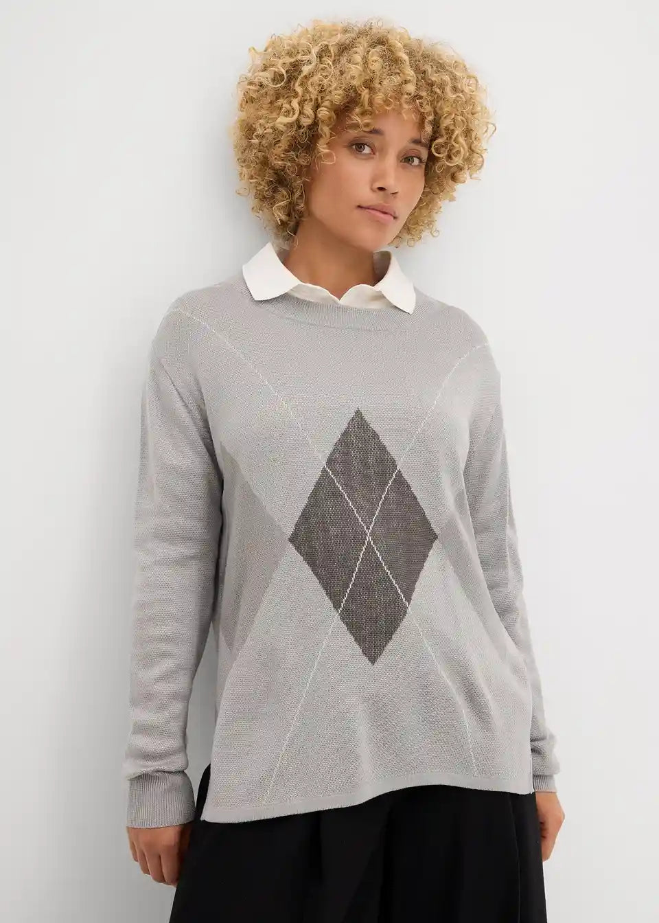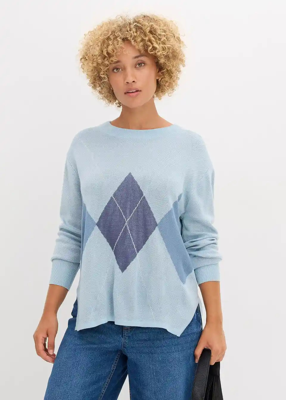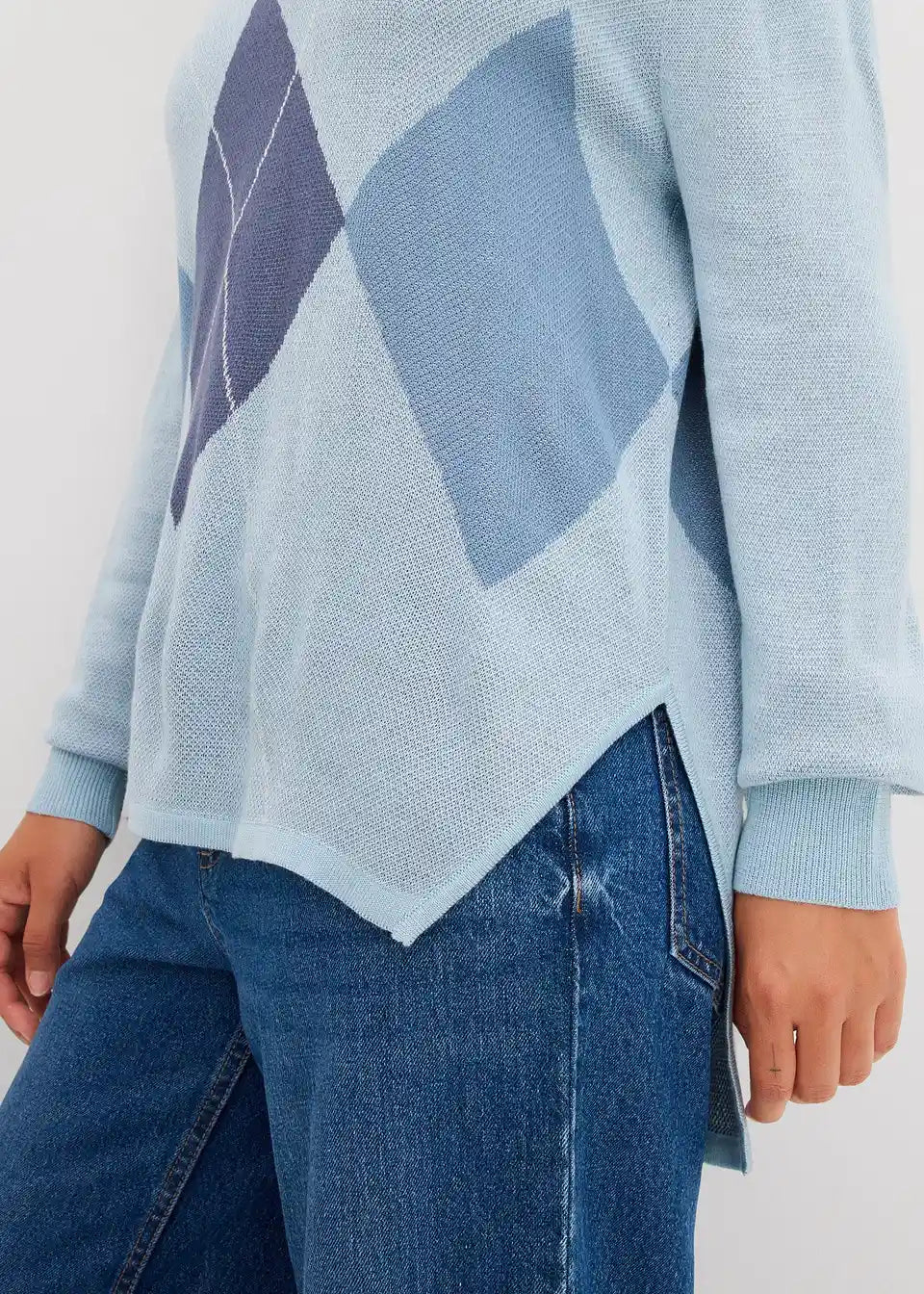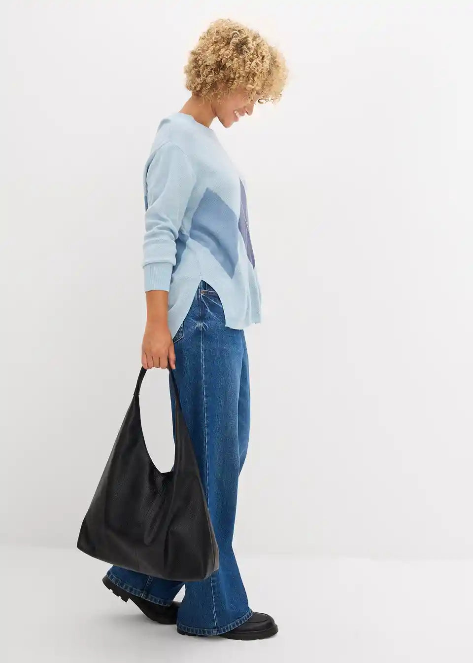 Longpulover s opuštenim ramenima i produženim stražnjim rubom. Široki kroj.