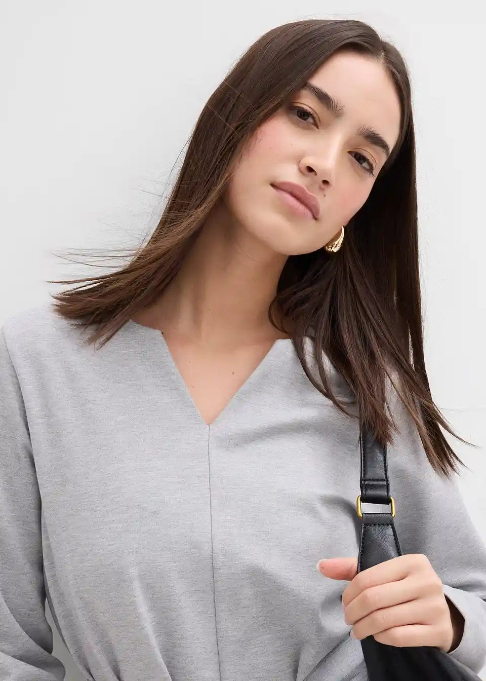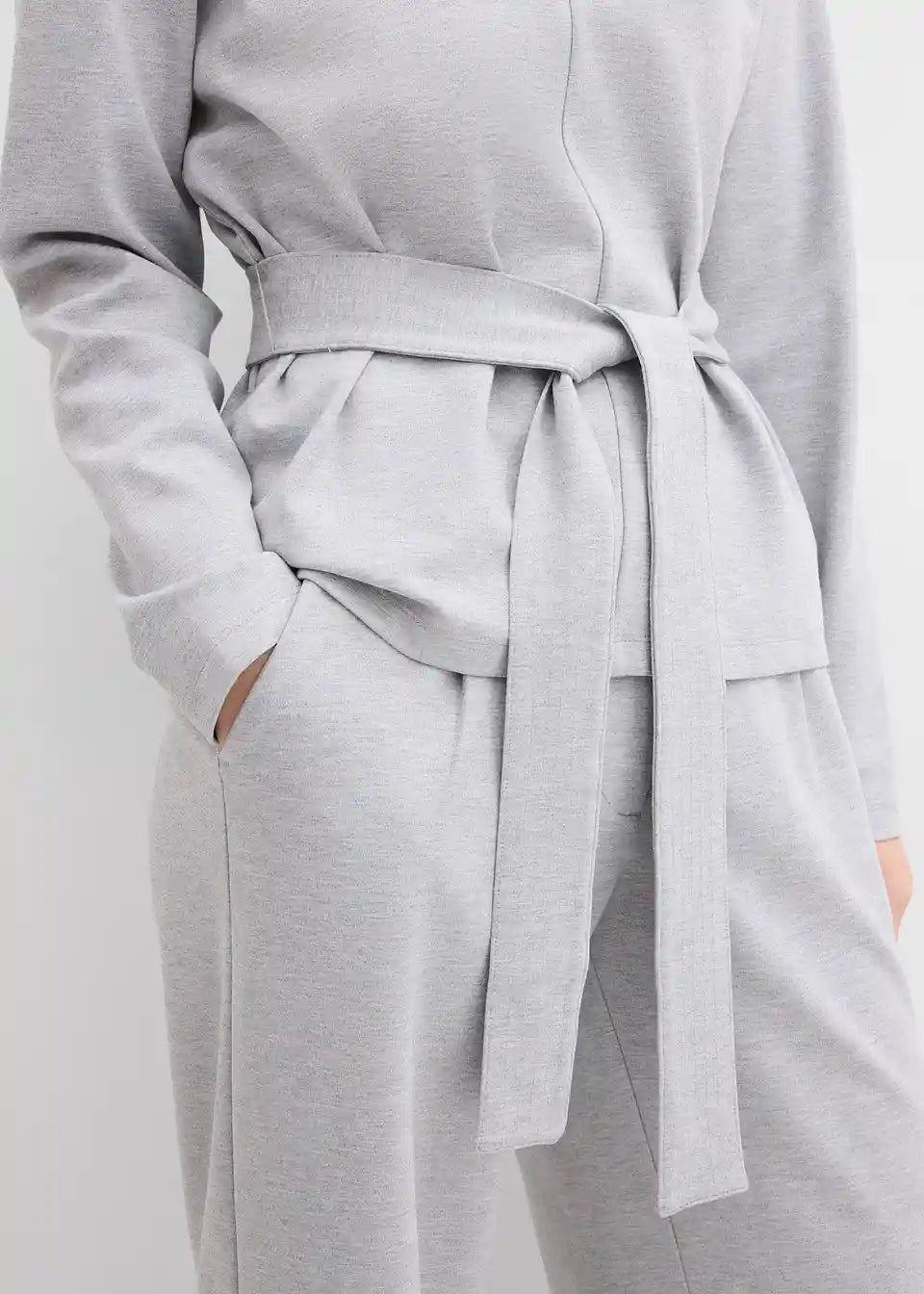 Sweatshirt s V-izrezom i pojasom za vezanje u struku