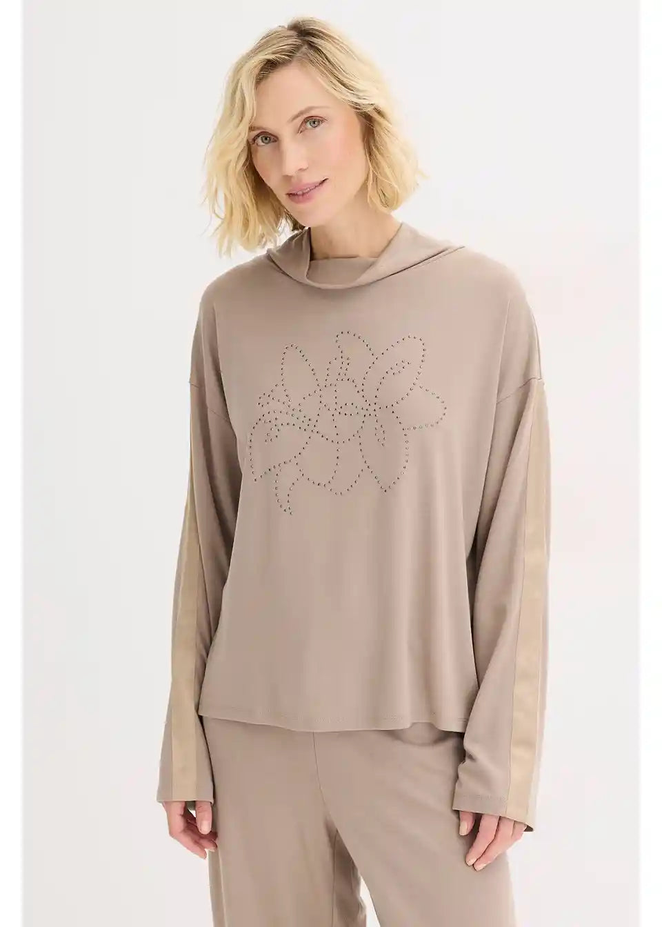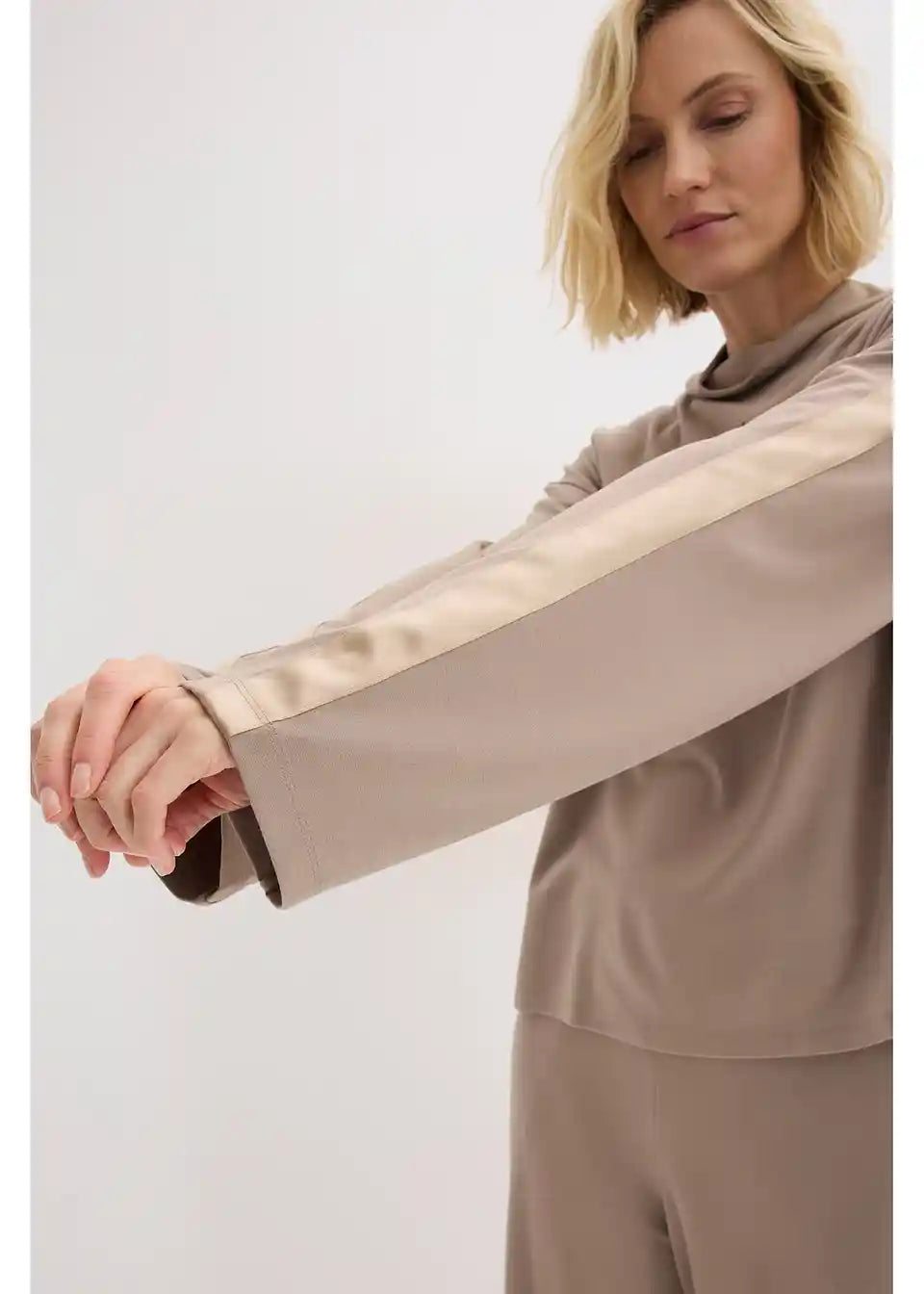 elegantna majica sa stojećim ovratnikom s umetkom od satenske vrpce na rukavu