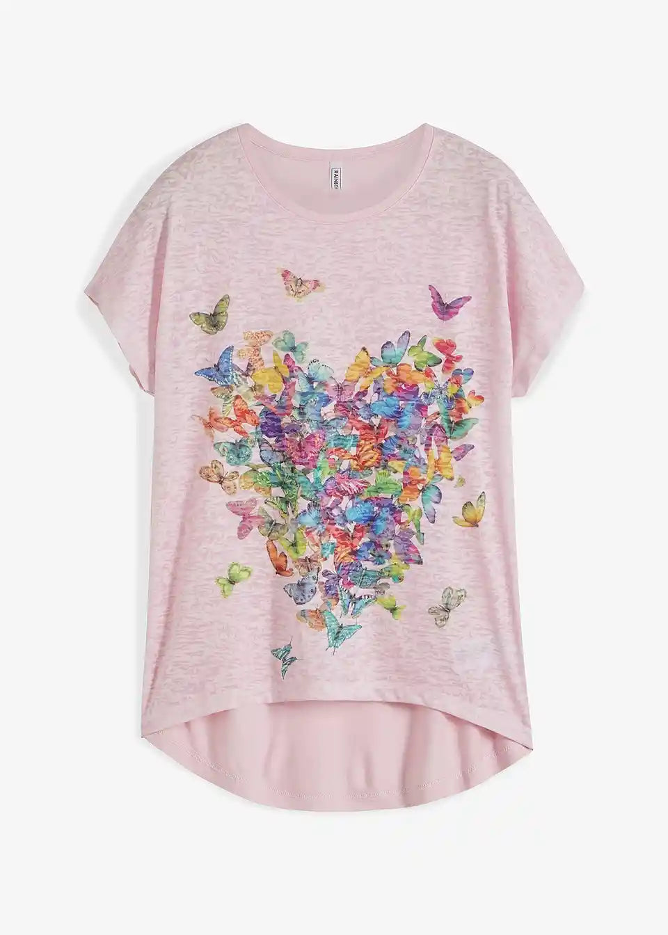 Ova cool majica sa printom leptira je savršen privlačitelj pogleda. Moderne majice su lagano strukirane i nude opušten, ležeran kroj. Na stražnjoj strani, zaobljeni rub je nešto duži nego sprijeda. Veliki print leptira i efekt spaljene tkanine stvaraju modni dojam. Posebno dobro pristaje uz traper hlače.