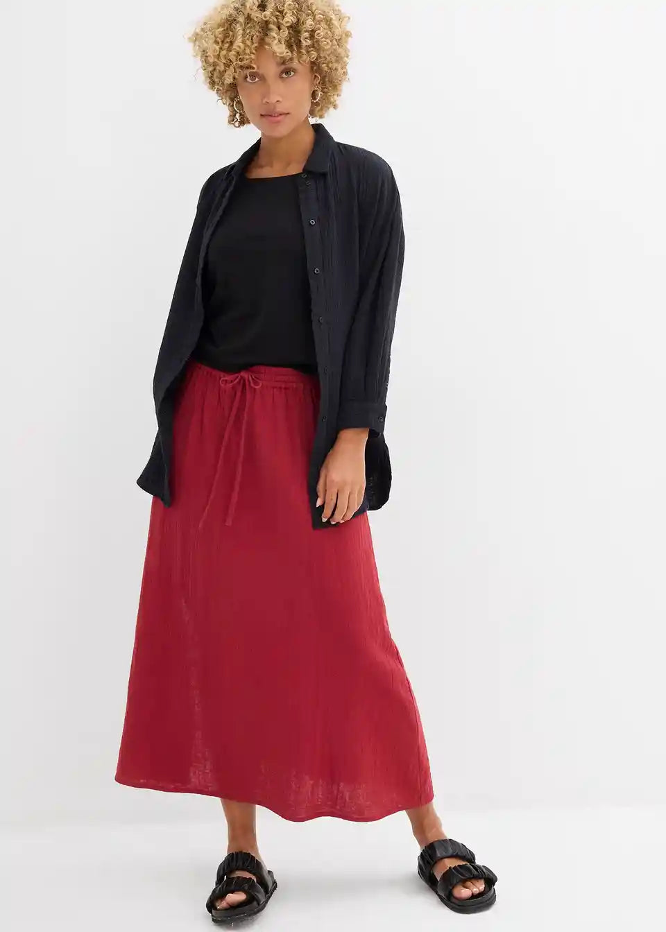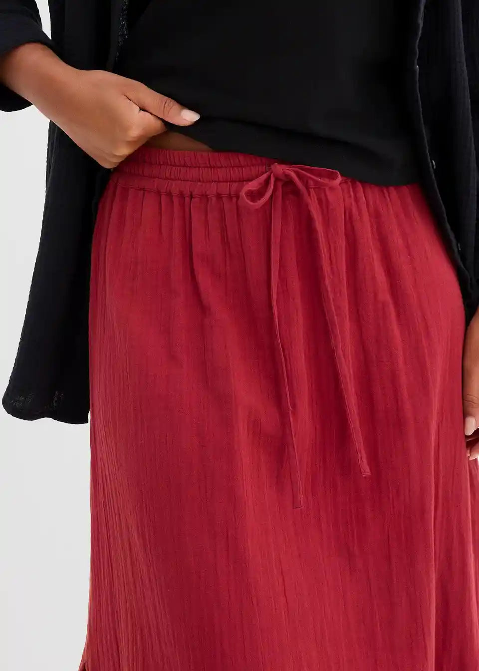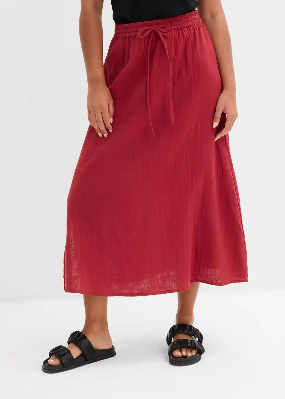Maksi suknja od mekane pamuka. S elastičnim pojasom i bočnim prorezom.