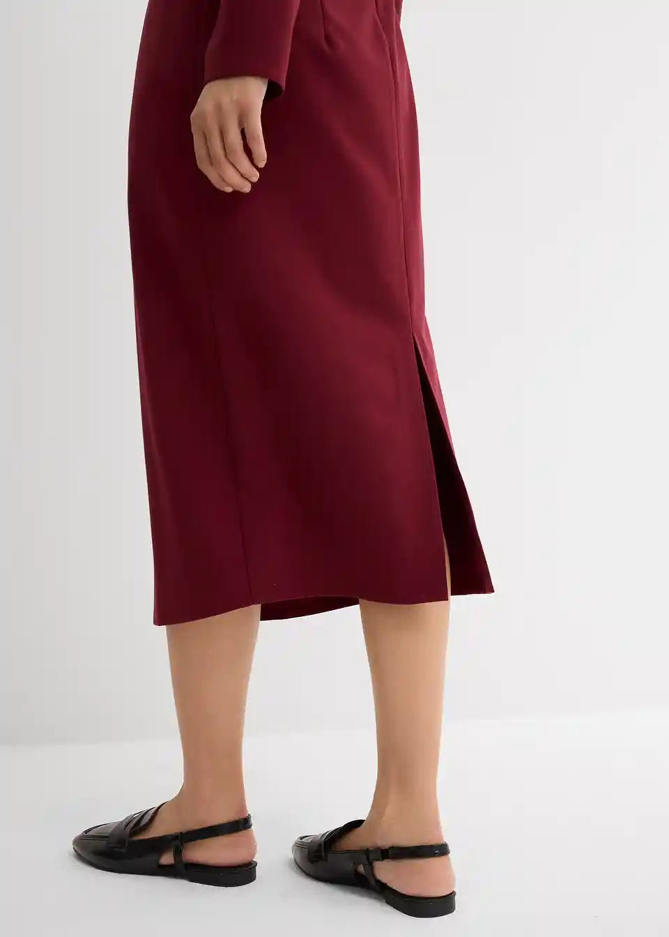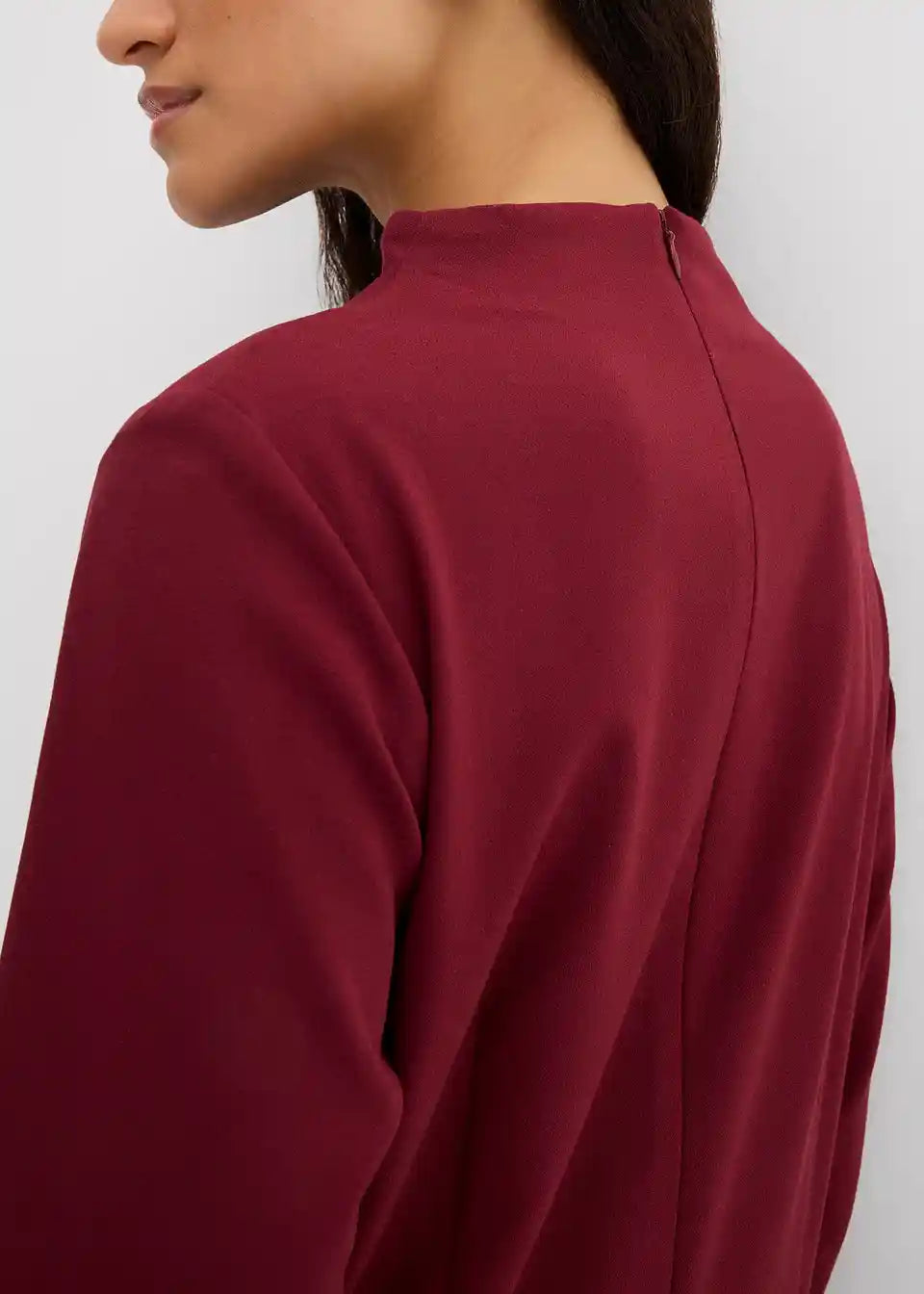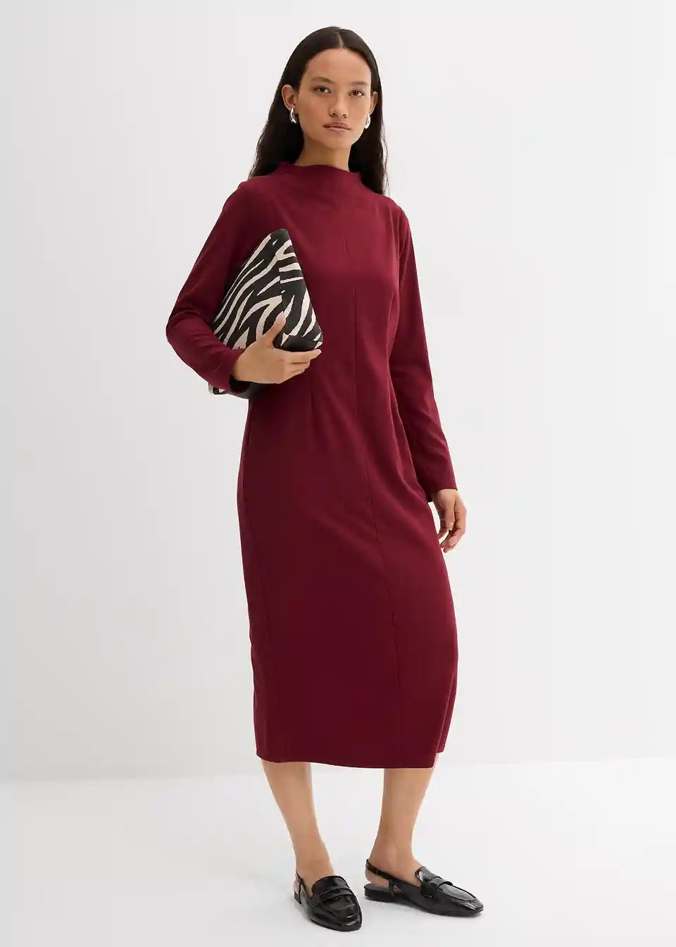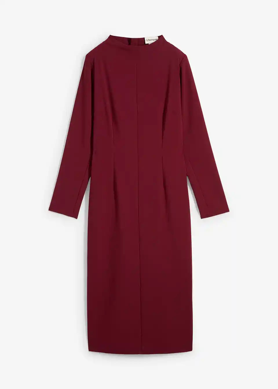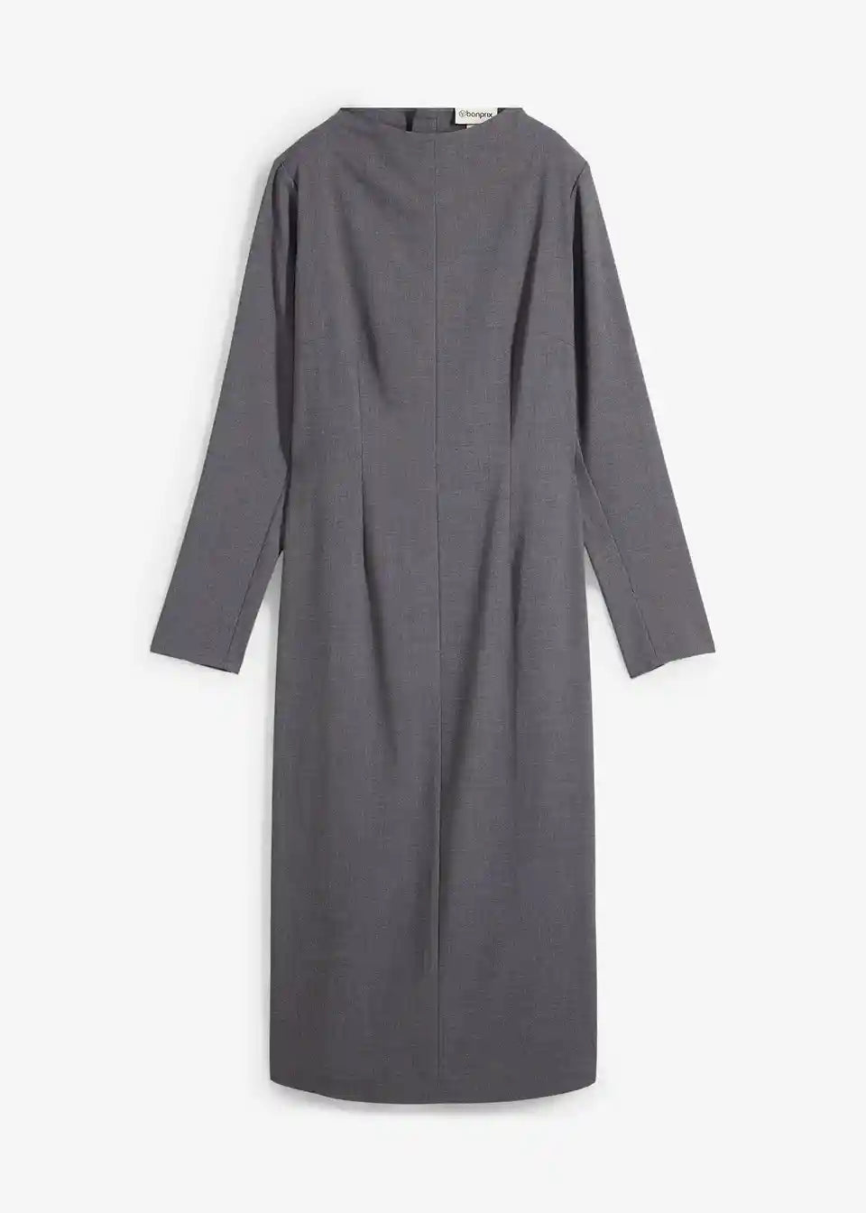 Zatvorena midi haljina s ušitcima i odvojnim šavovima sprijeda i straga te patentnim zatvaračem na leđima