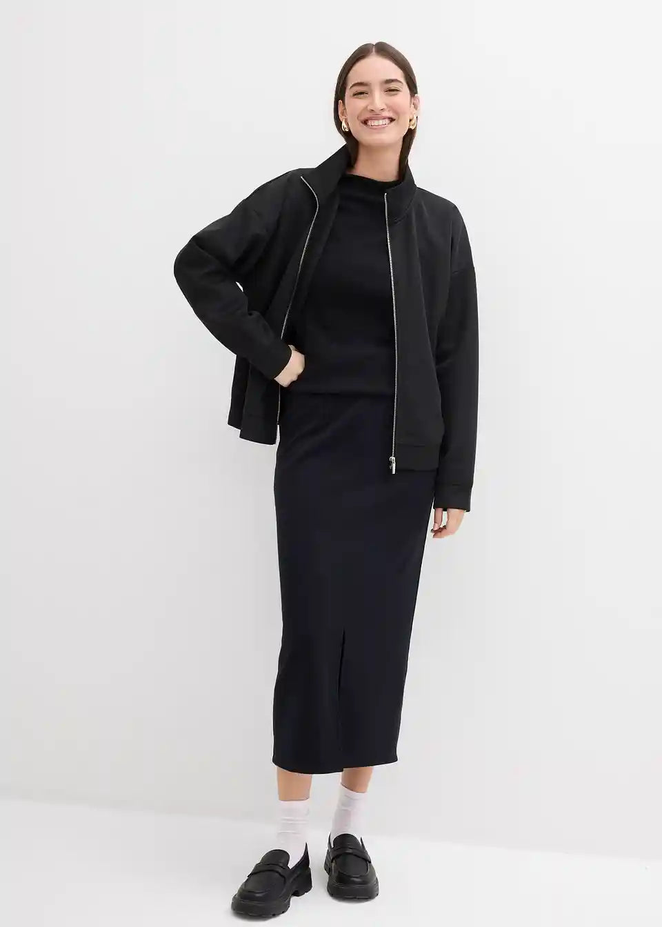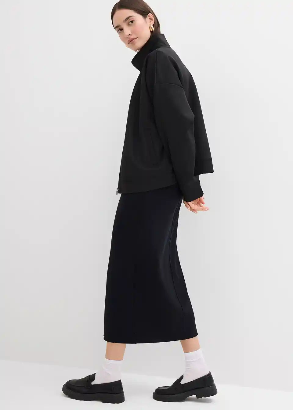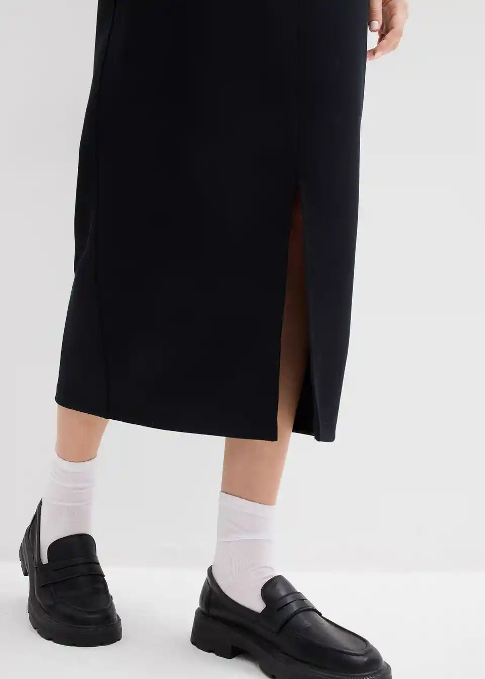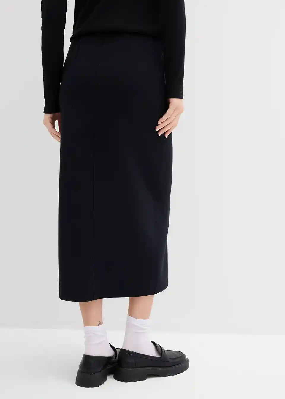 Midisuknja od Scuba materijala s prorezom sprijeda i elastičnim pojasom
