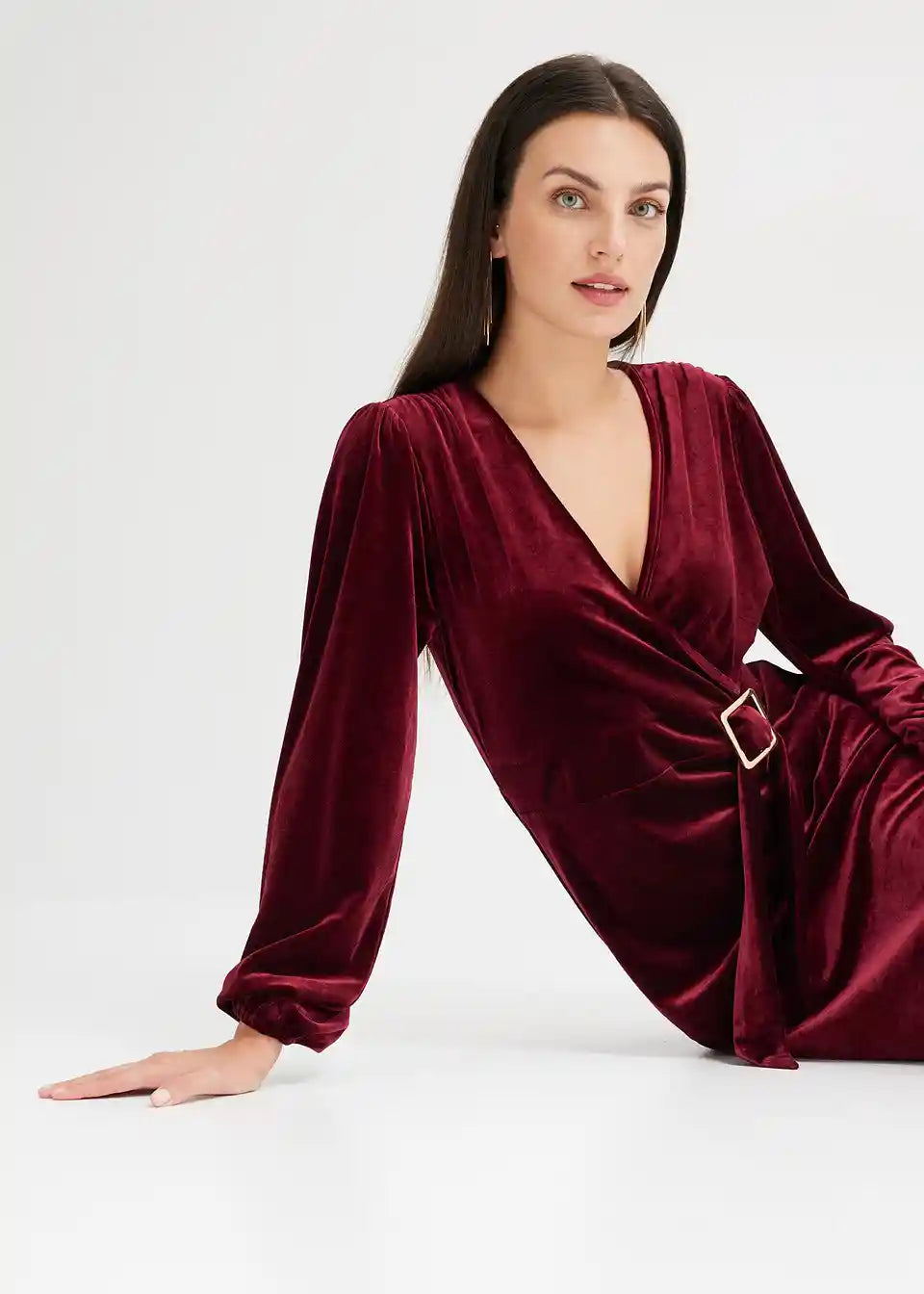 Moderno i ženstveno: Mini haljina od mekog baršuna u preklopnom izgledu s metalnom kopčom