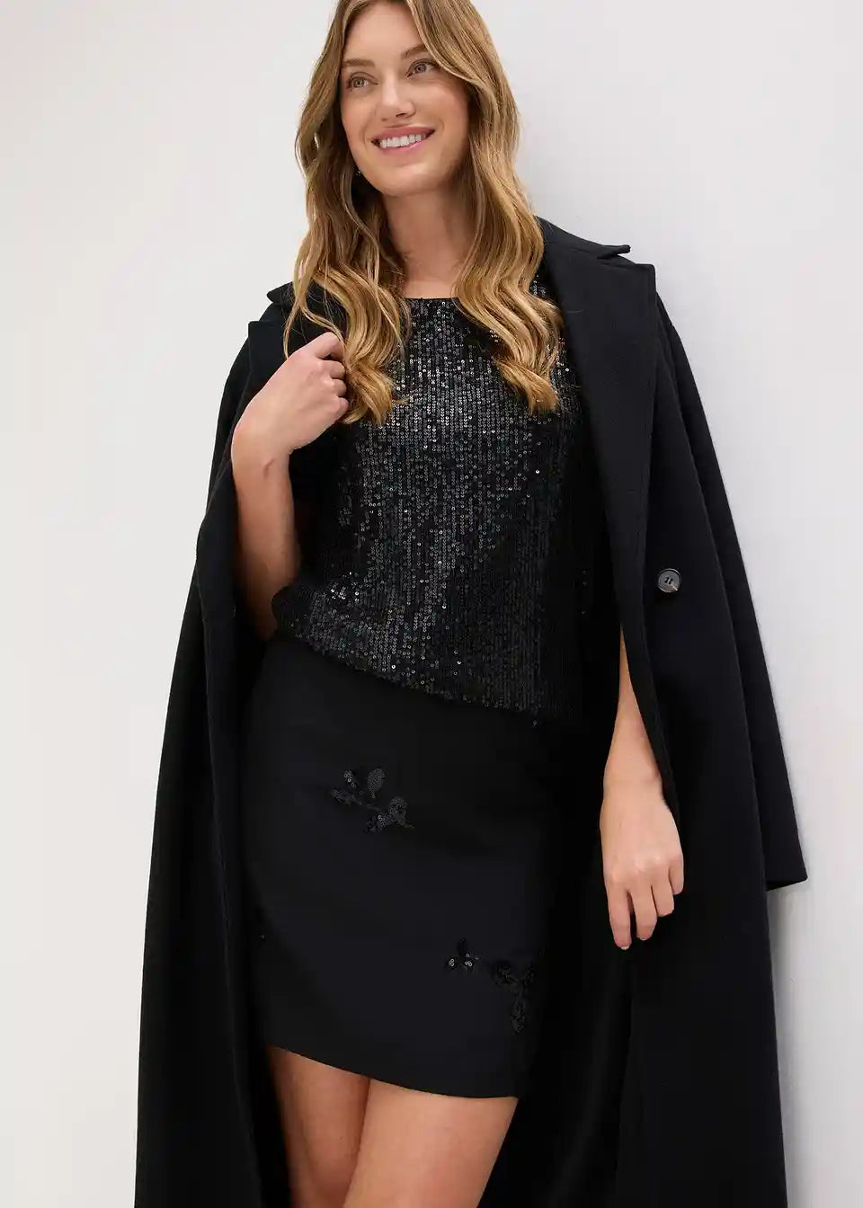 Sjajna satenska suknja s blještavim aplikacijama
