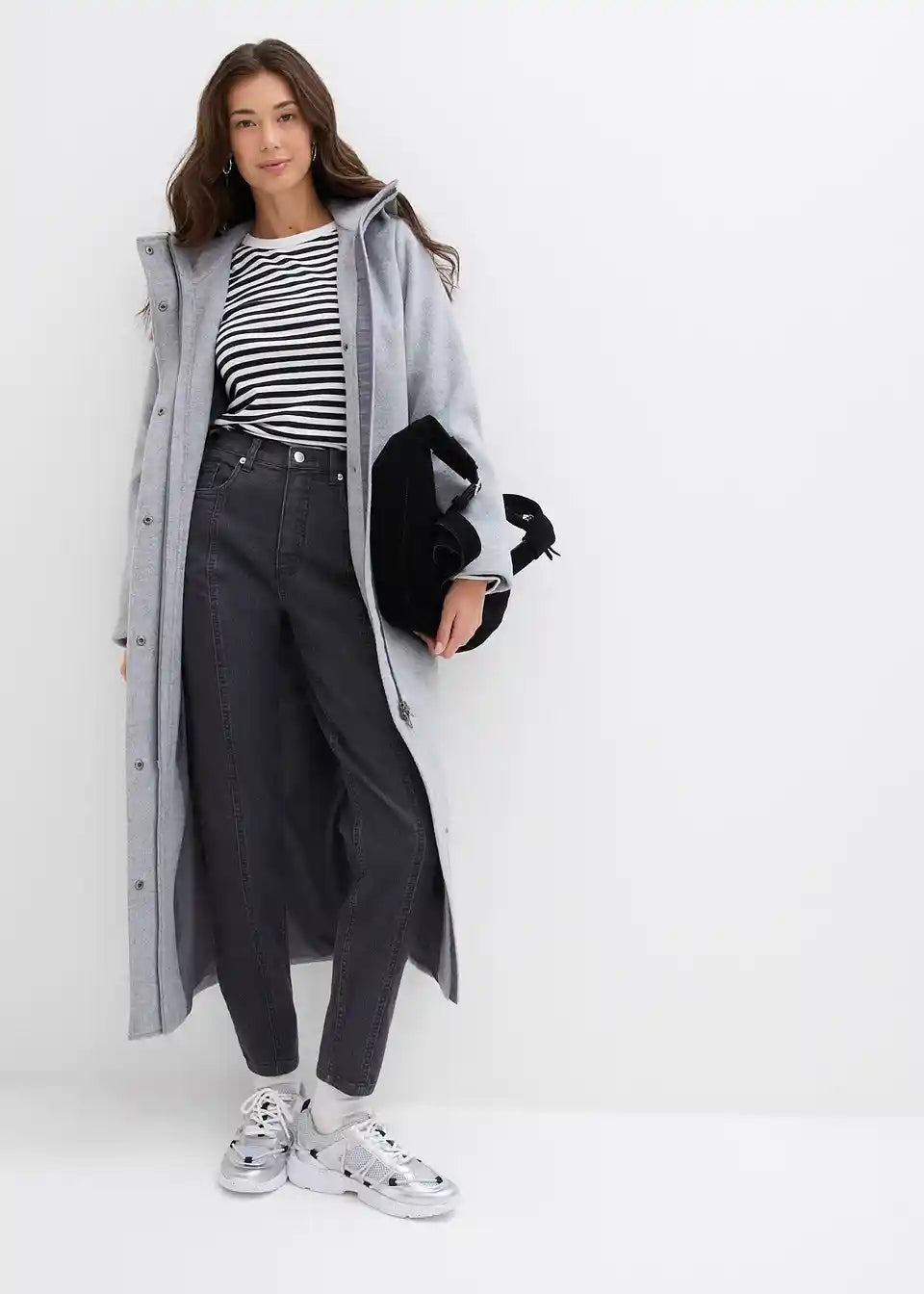 Mom traperice s vrlo visokim komotnim strukom od stretch materijala