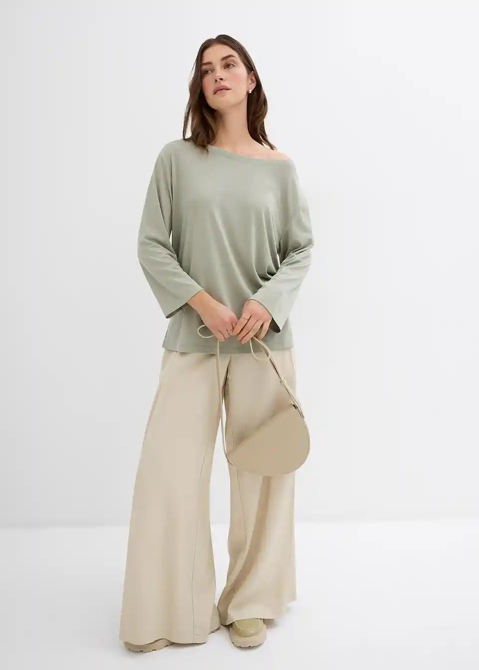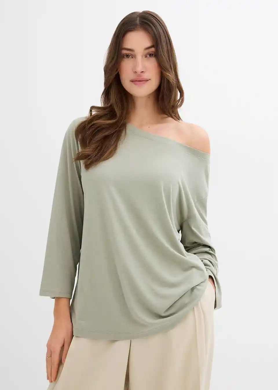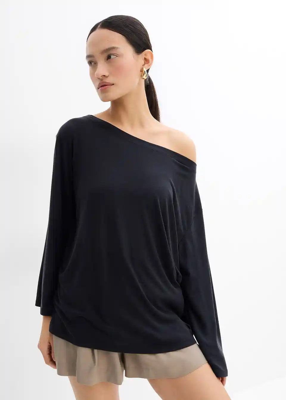Off-Shoulder Shirt s dugim rukavima i asimetričnim porubom od Modal-miksa